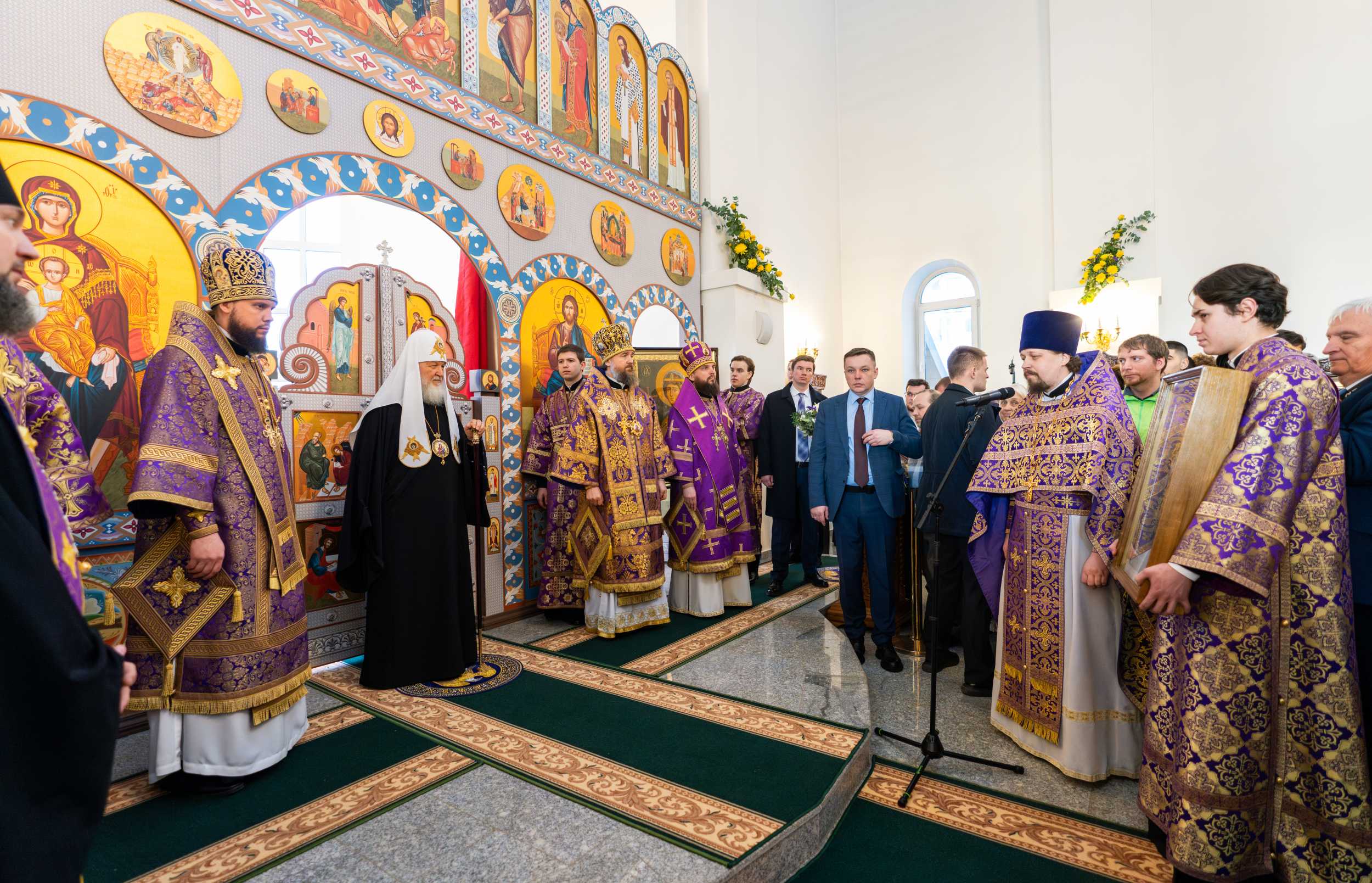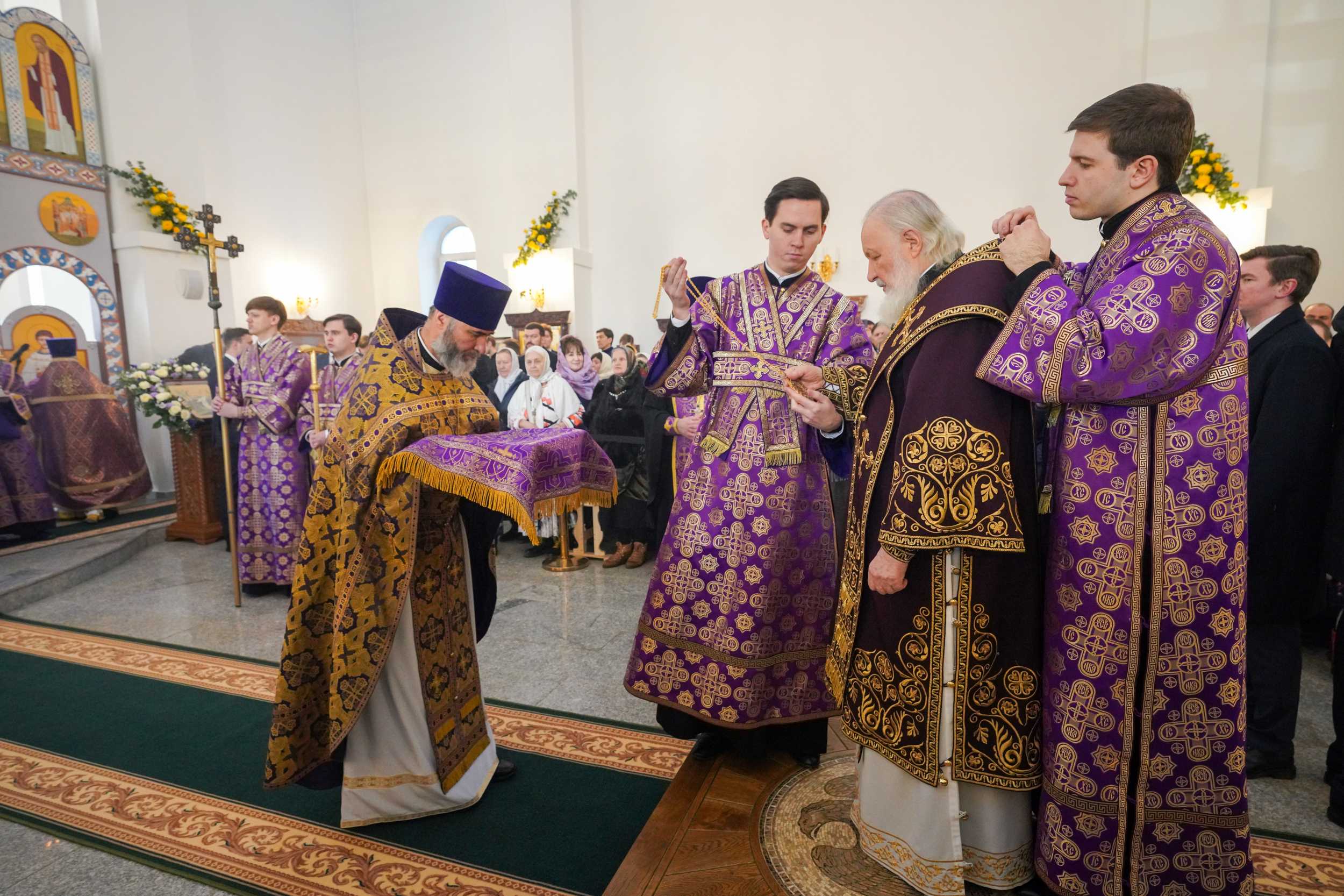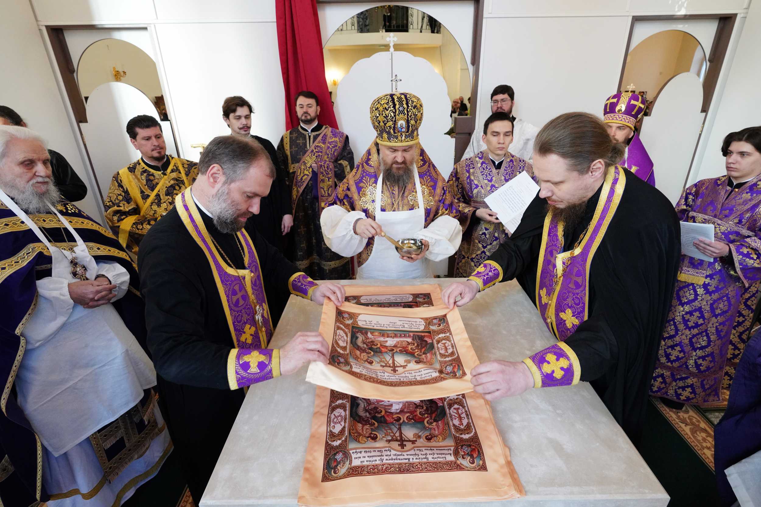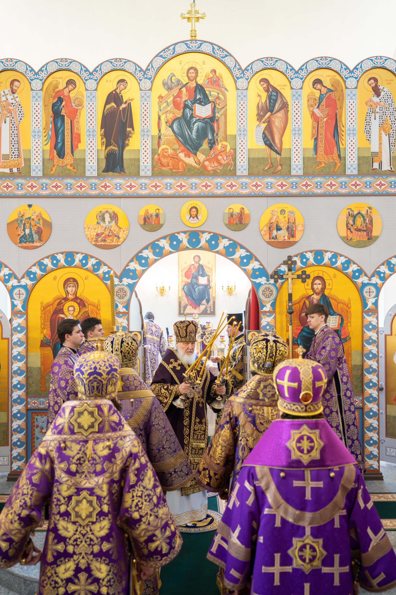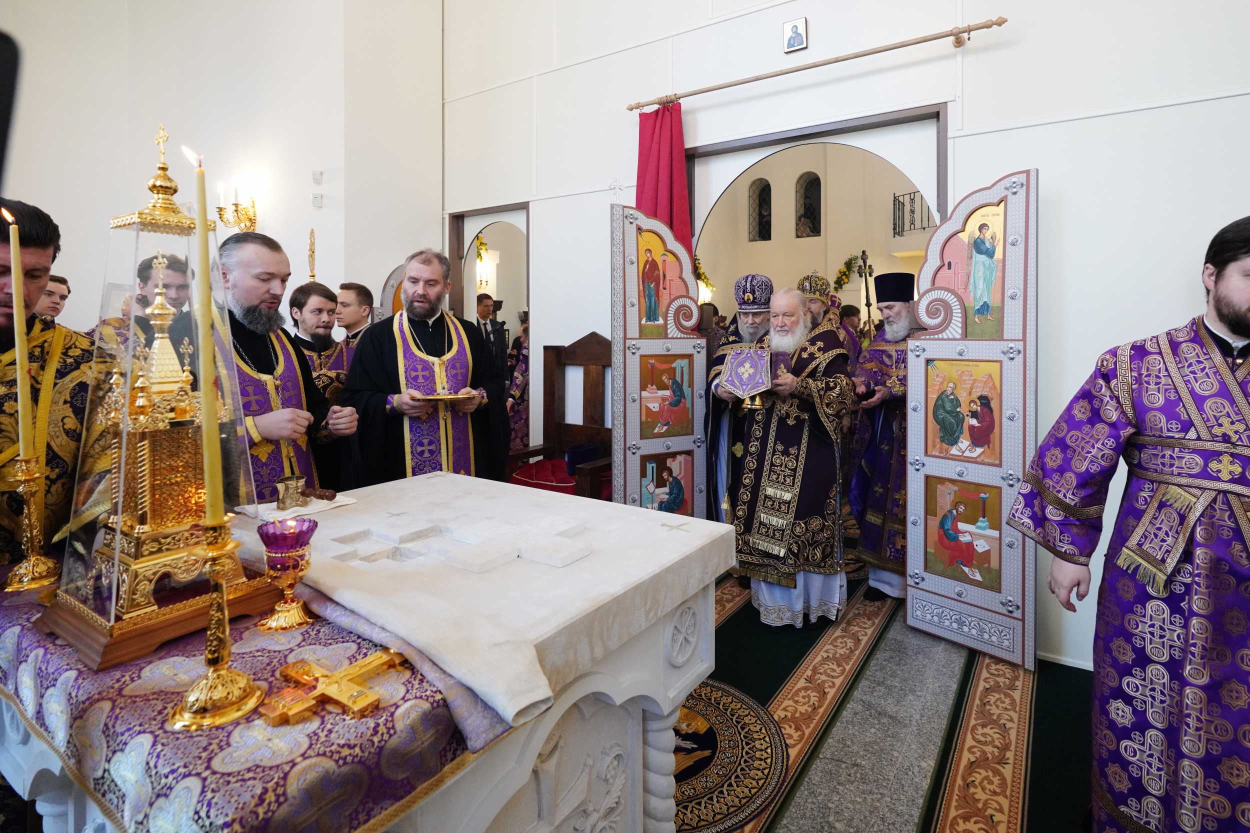 Предстоятель Русской Православной Церкви освятил основной престол в честь блаженной Ксении Петербургской, северный — в честь благоверного князя Иоанна Калиты, а также 20 антиминсов.