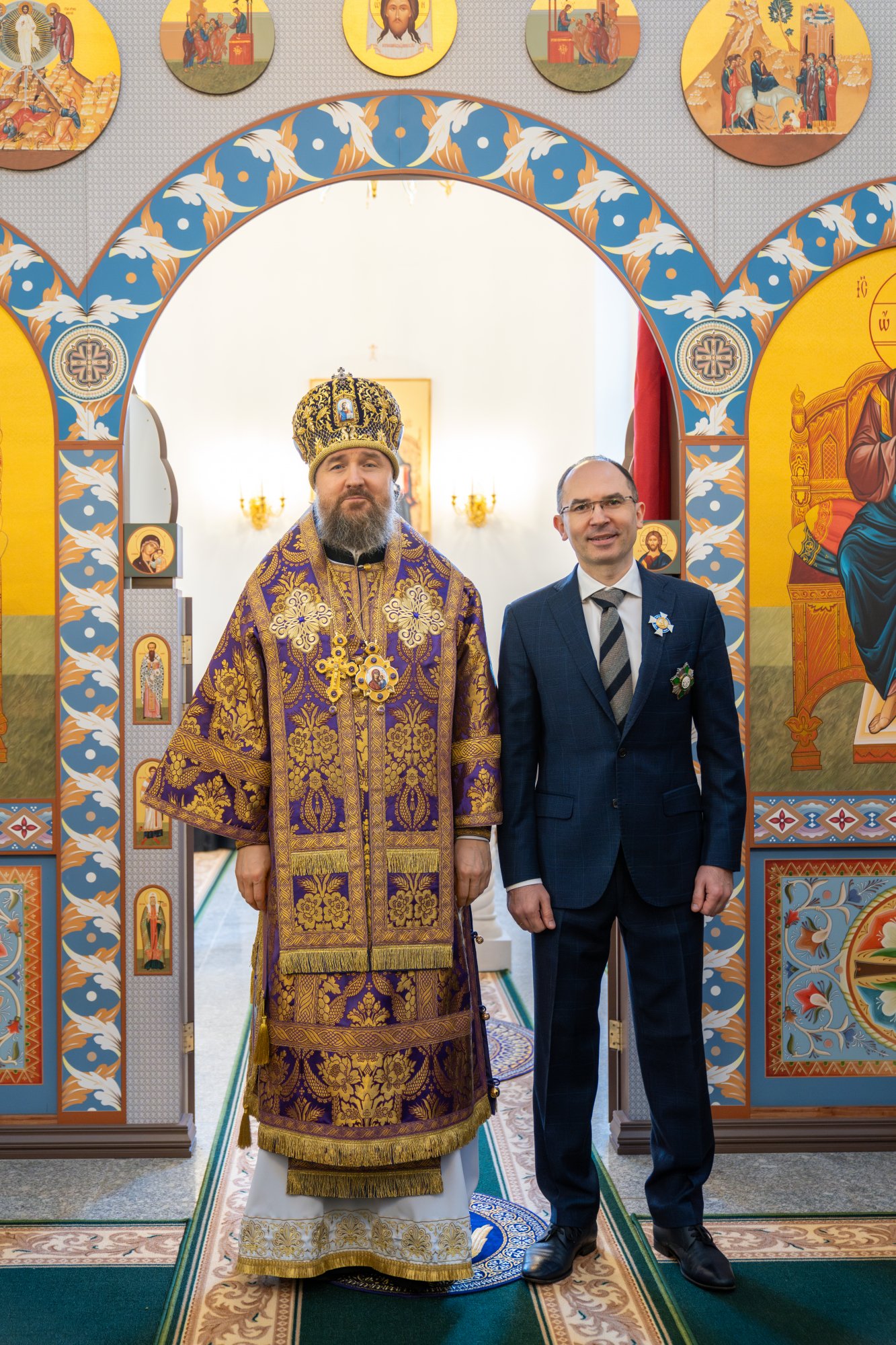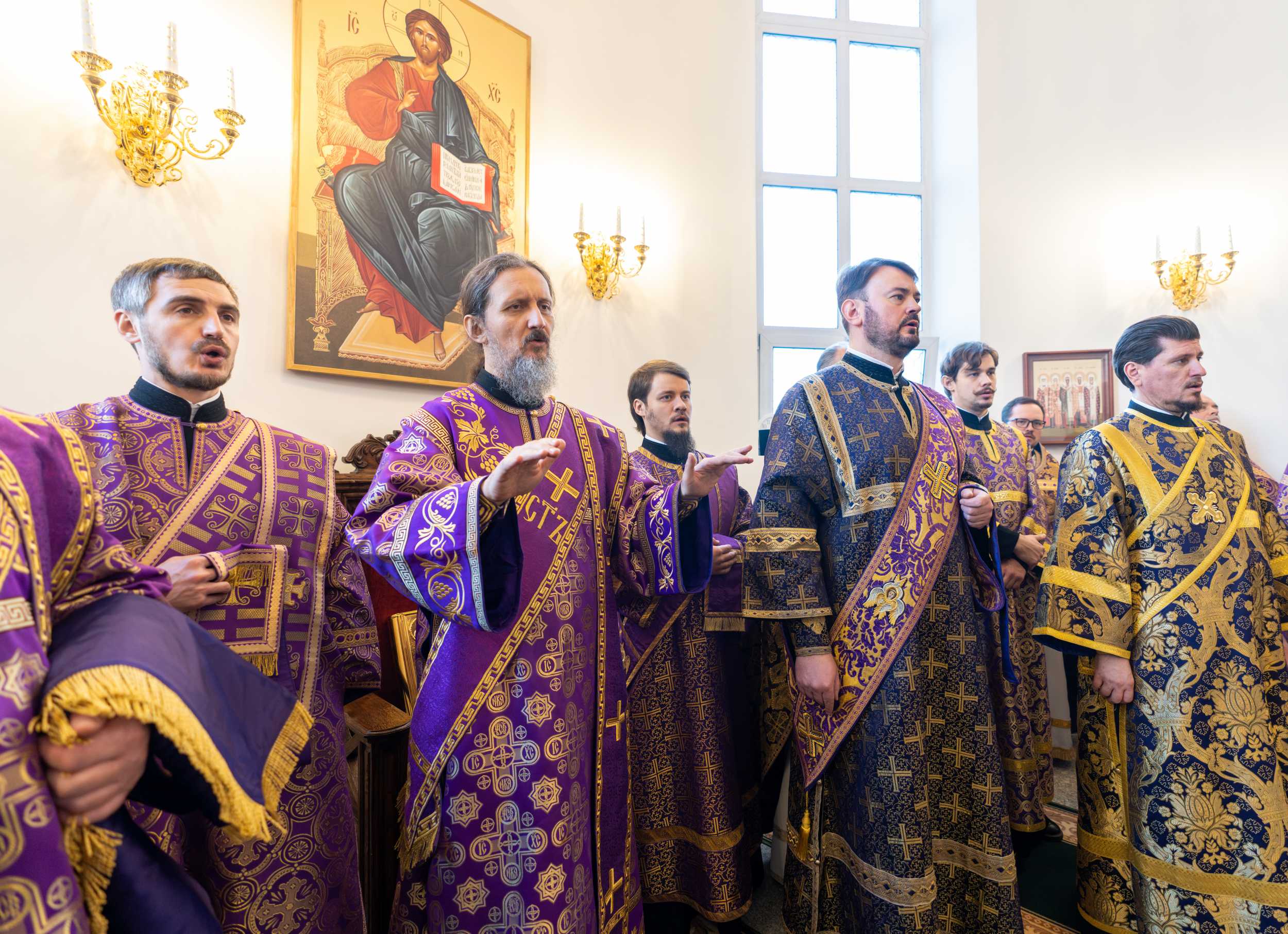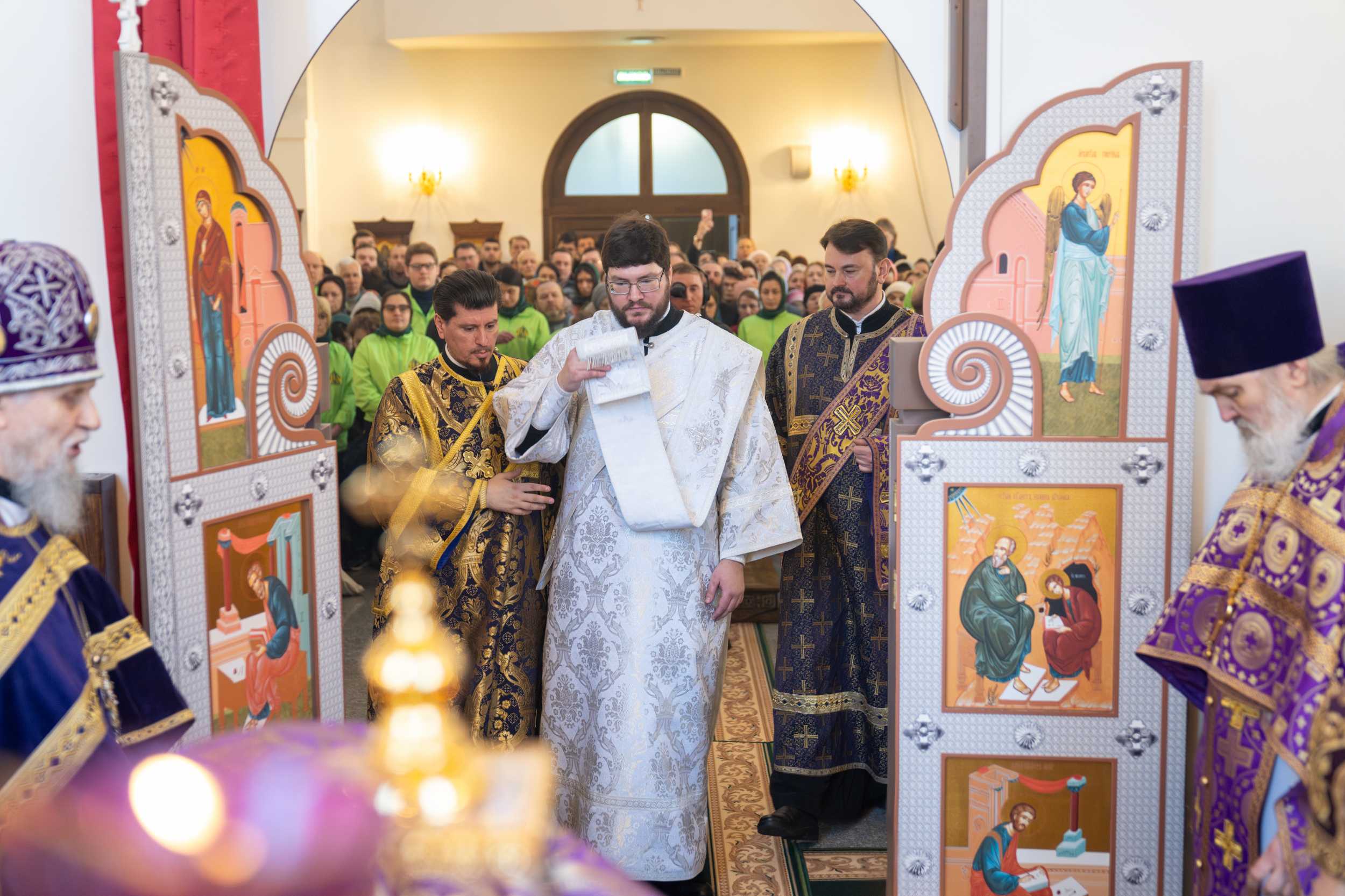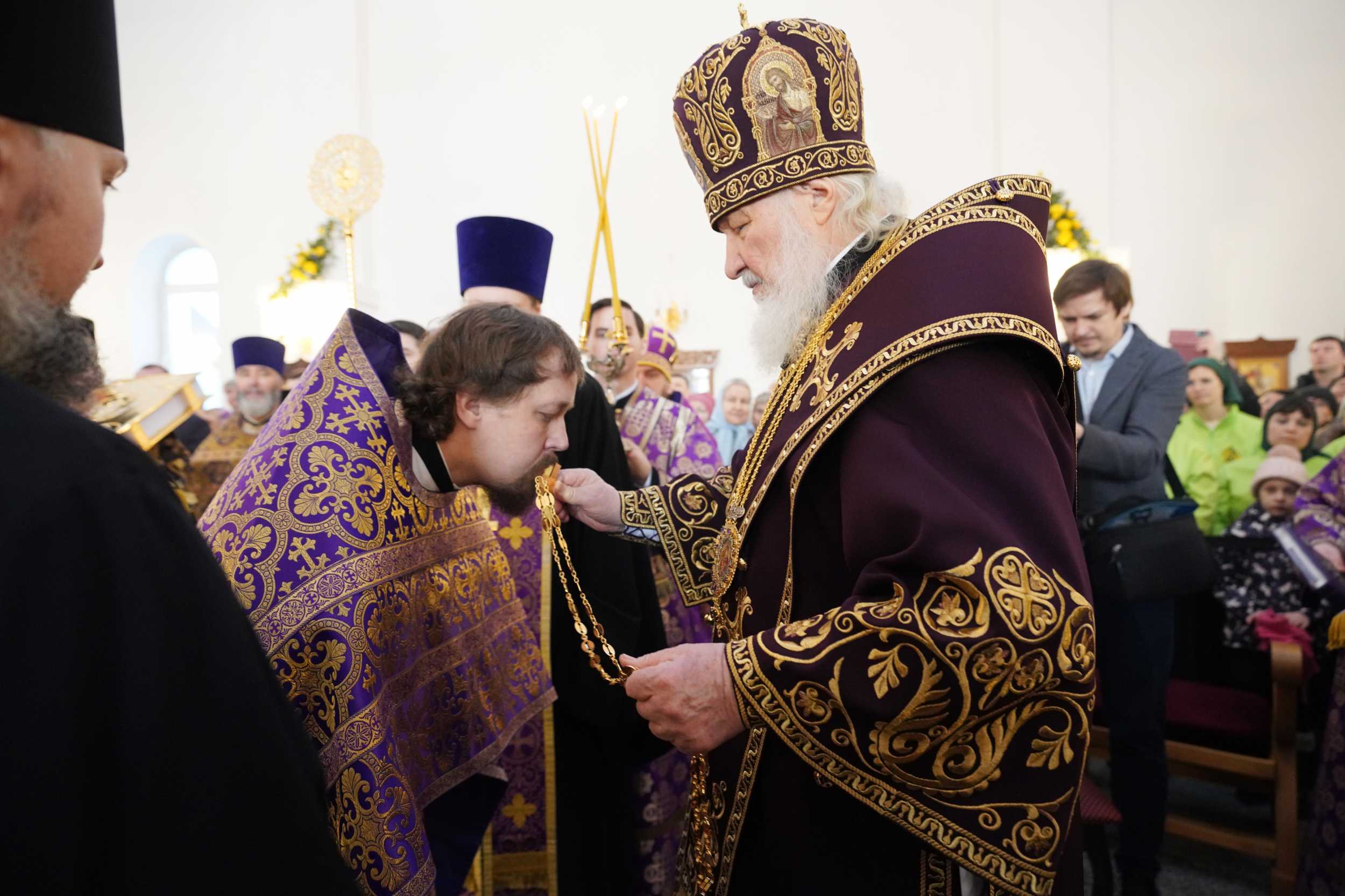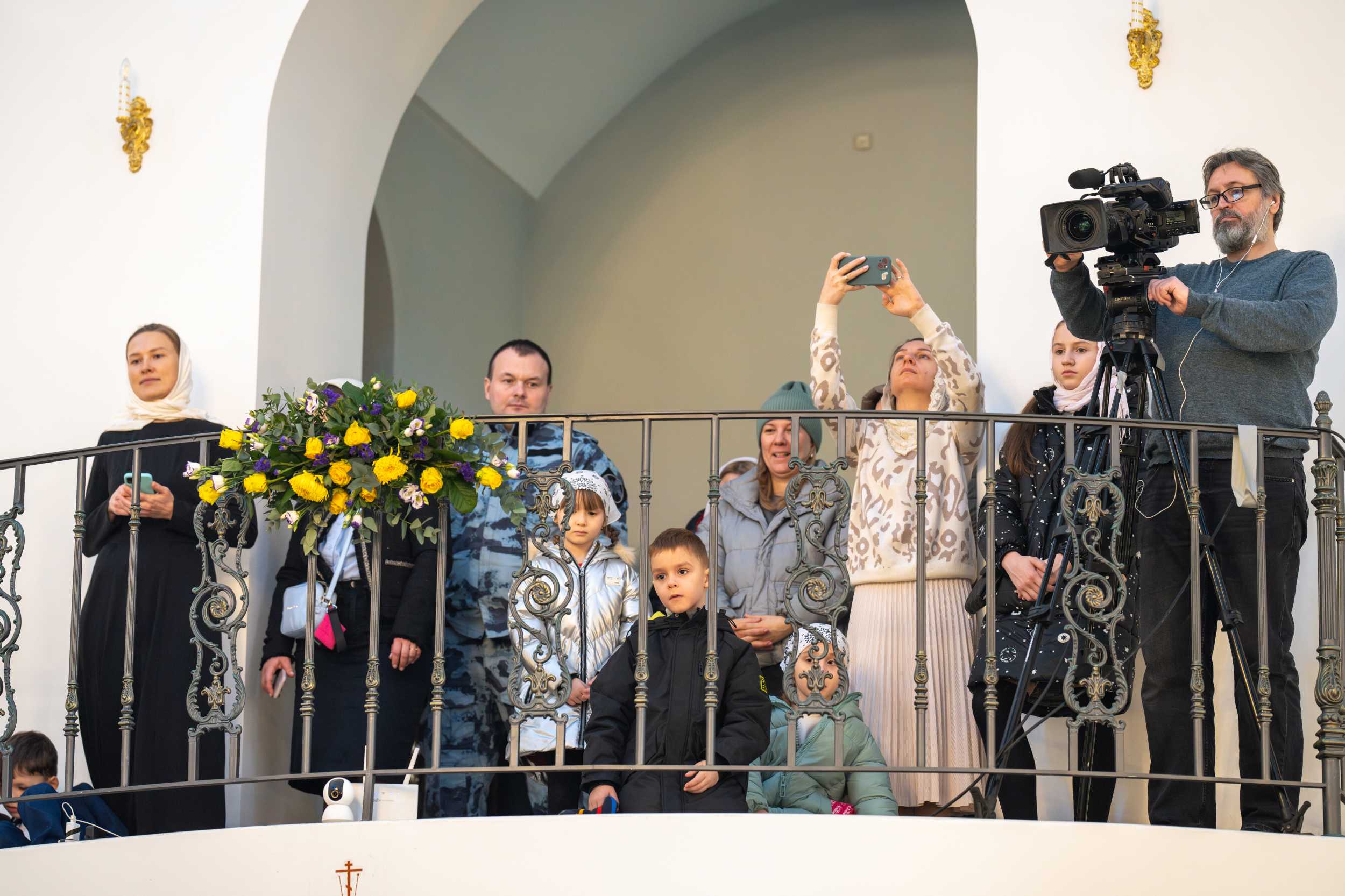 На малом входе указом Святейшего Патриарха Кирилла во внимание к трудам по строительству храма блаженной Ксении Петербургской — Патриаршего подворья в Бескудникове г. Москвы иерей Михаил Кузелев был удостоен права ношения наперсного креста золотого цвета.