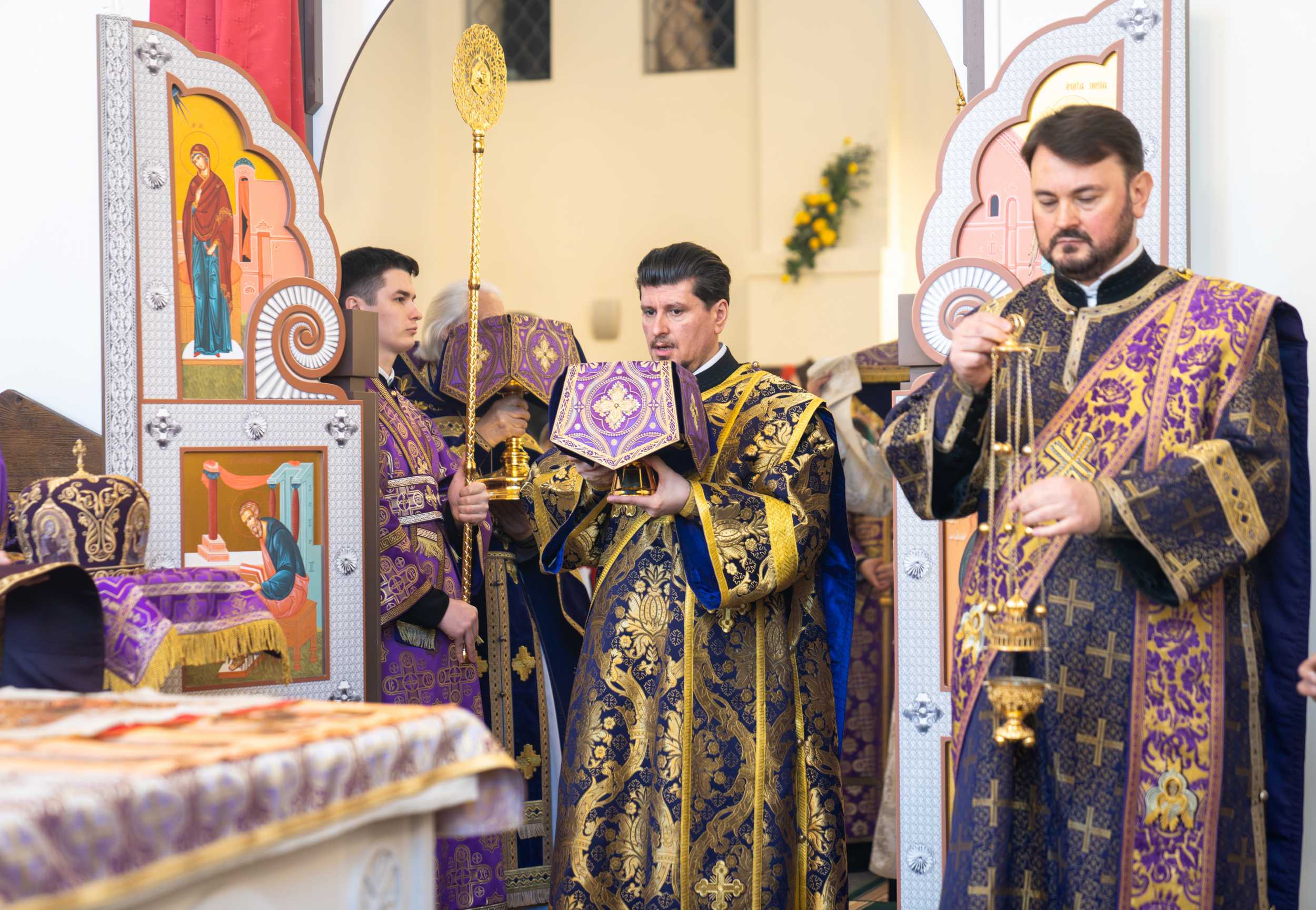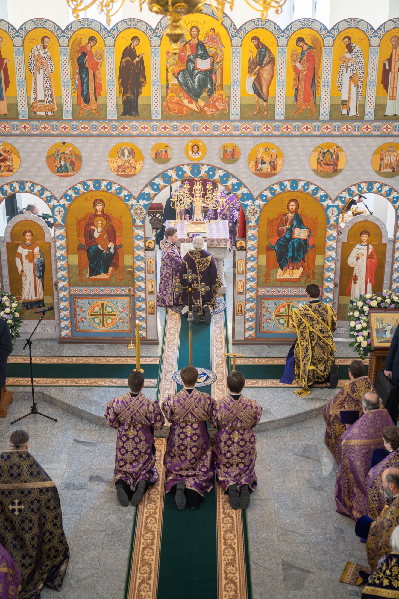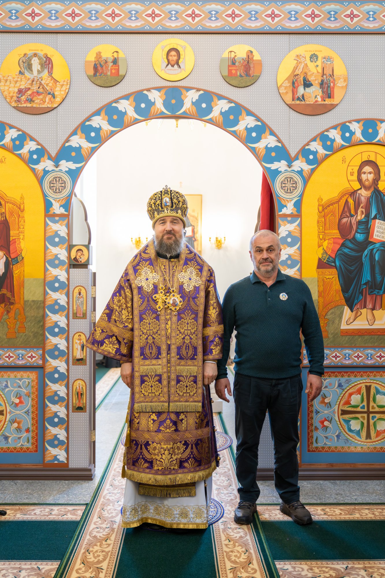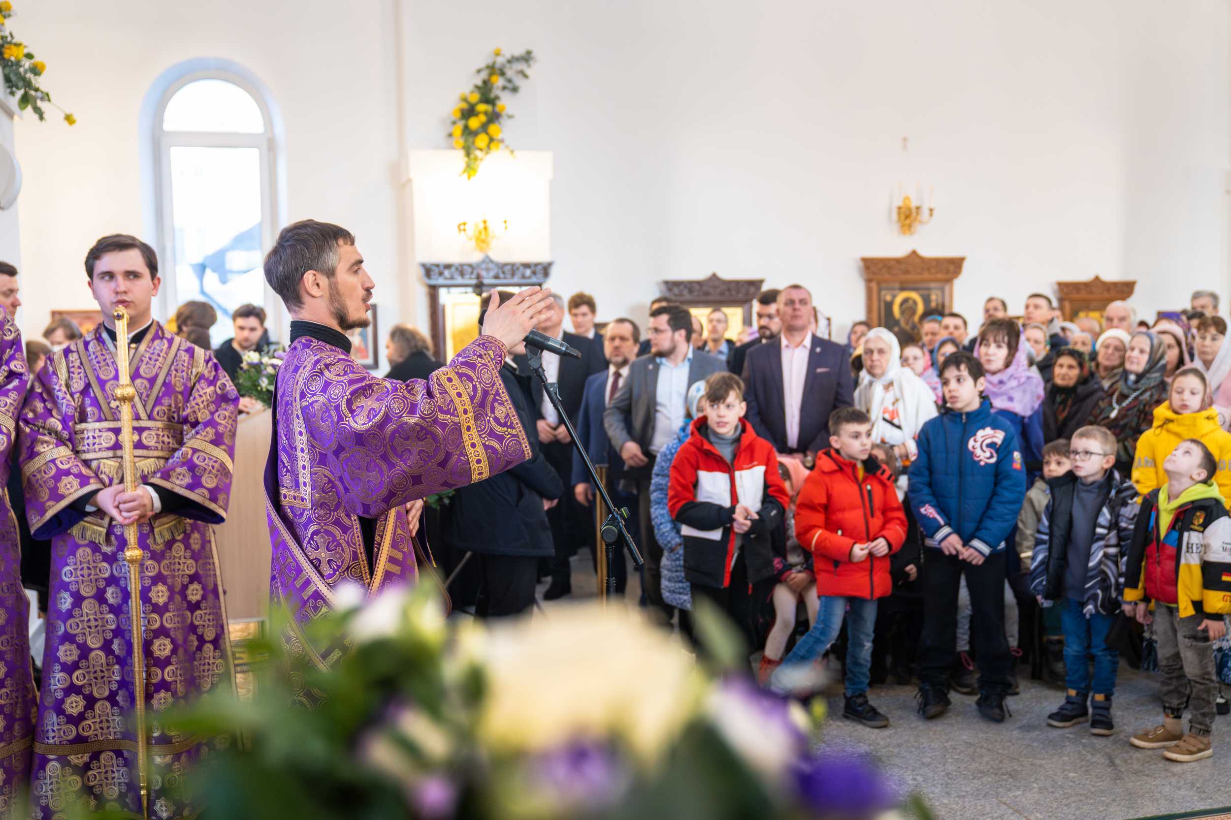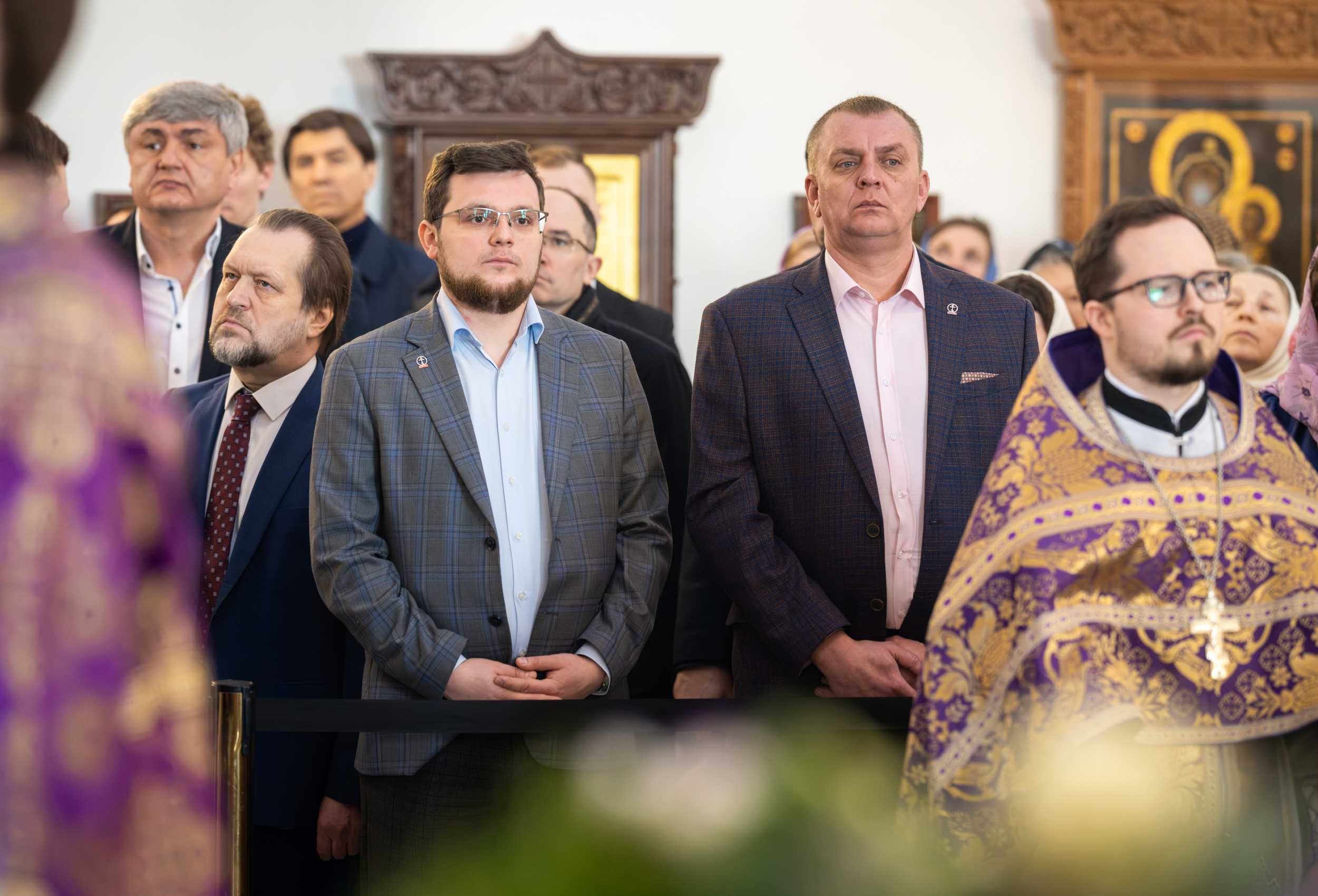 На малом входе указом Святейшего Патриарха Кирилла во внимание к трудам по строительству храма блаженной Ксении Петербургской — Патриаршего подворья в Бескудникове г. Москвы иерей Михаил Кузелев был удостоен права ношения наперсного креста золотого цвета.