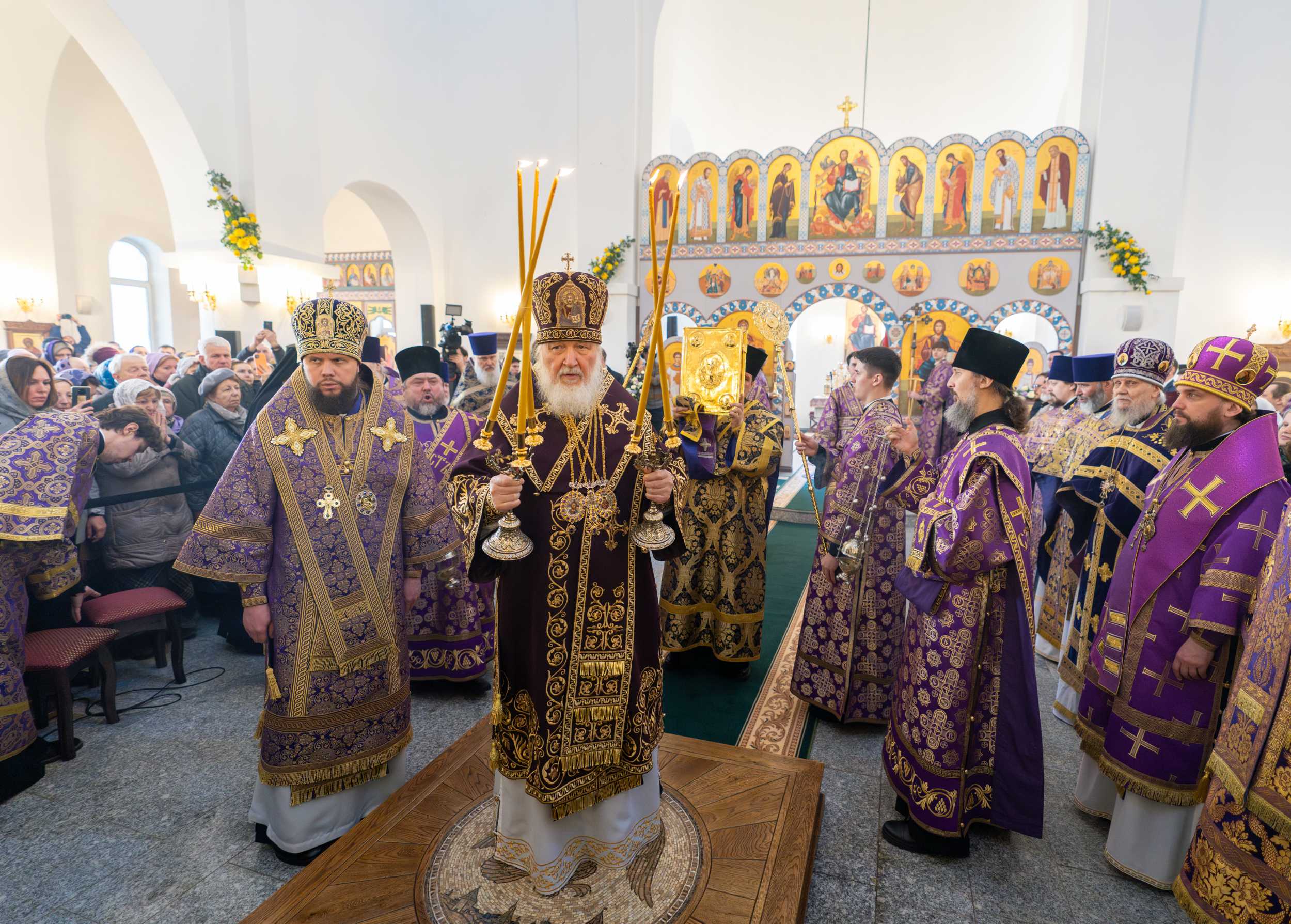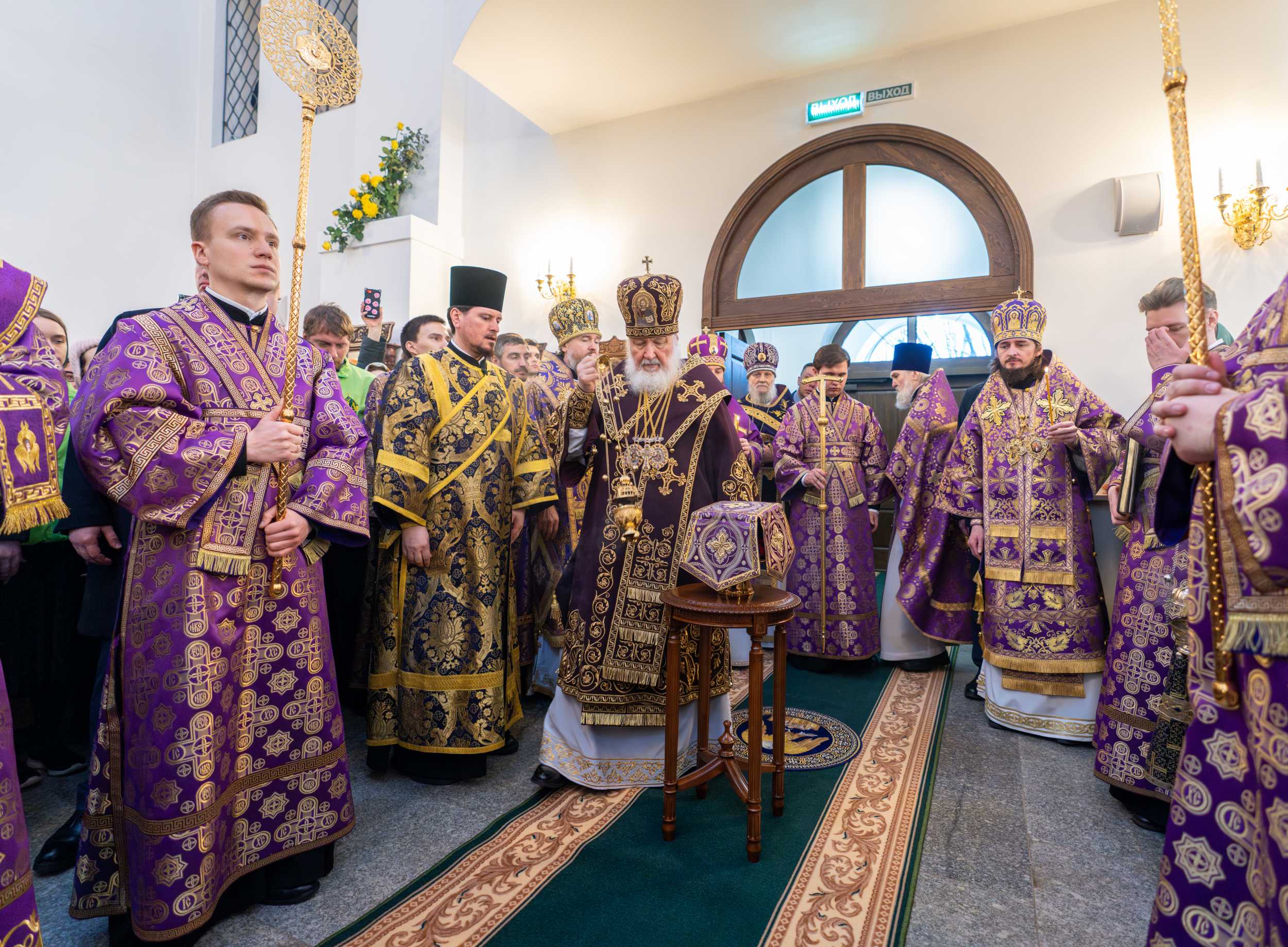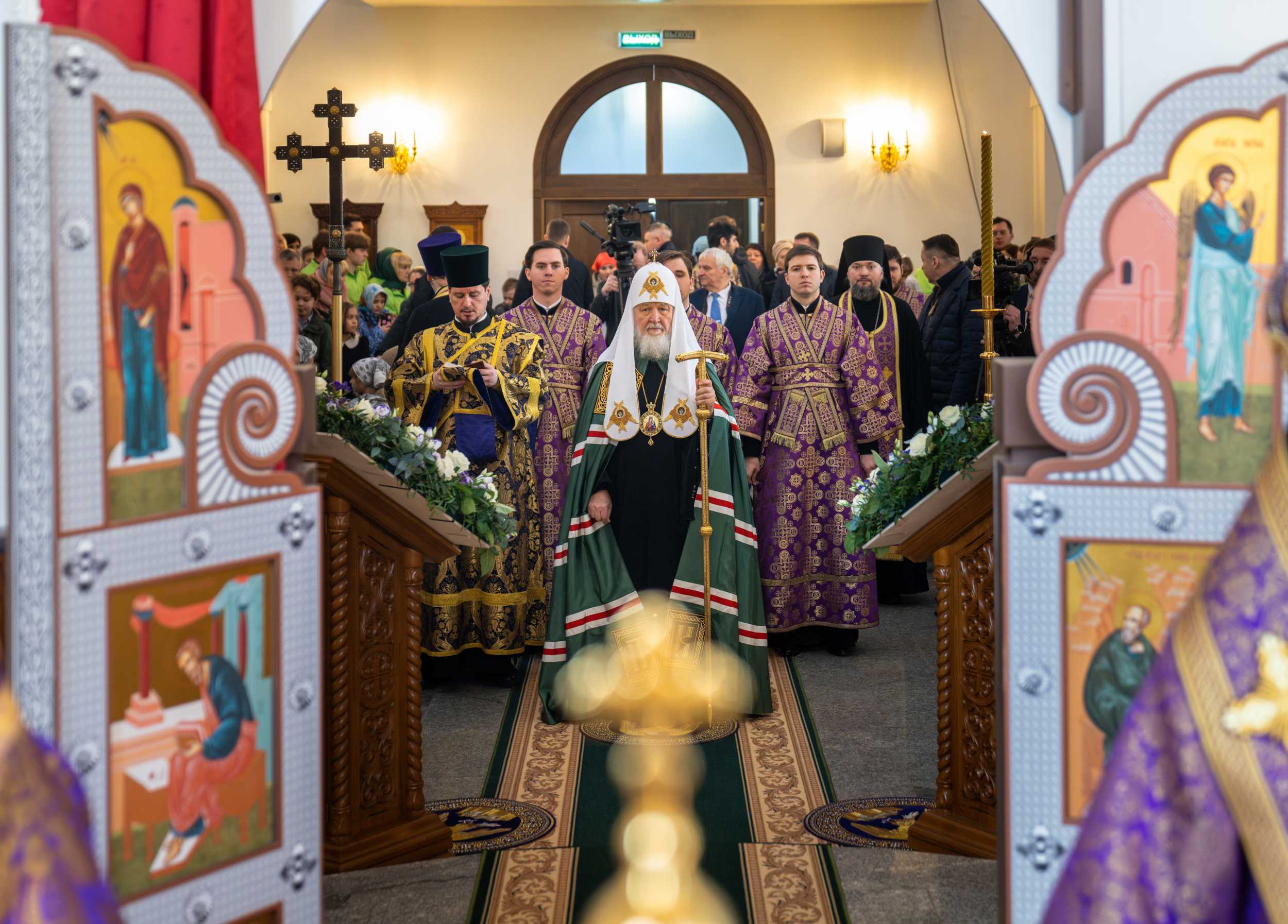 На сугубой ектении были вознесены особые прошения, Предстоятель Русской Церкви прочитал молитву о Святой Руси.