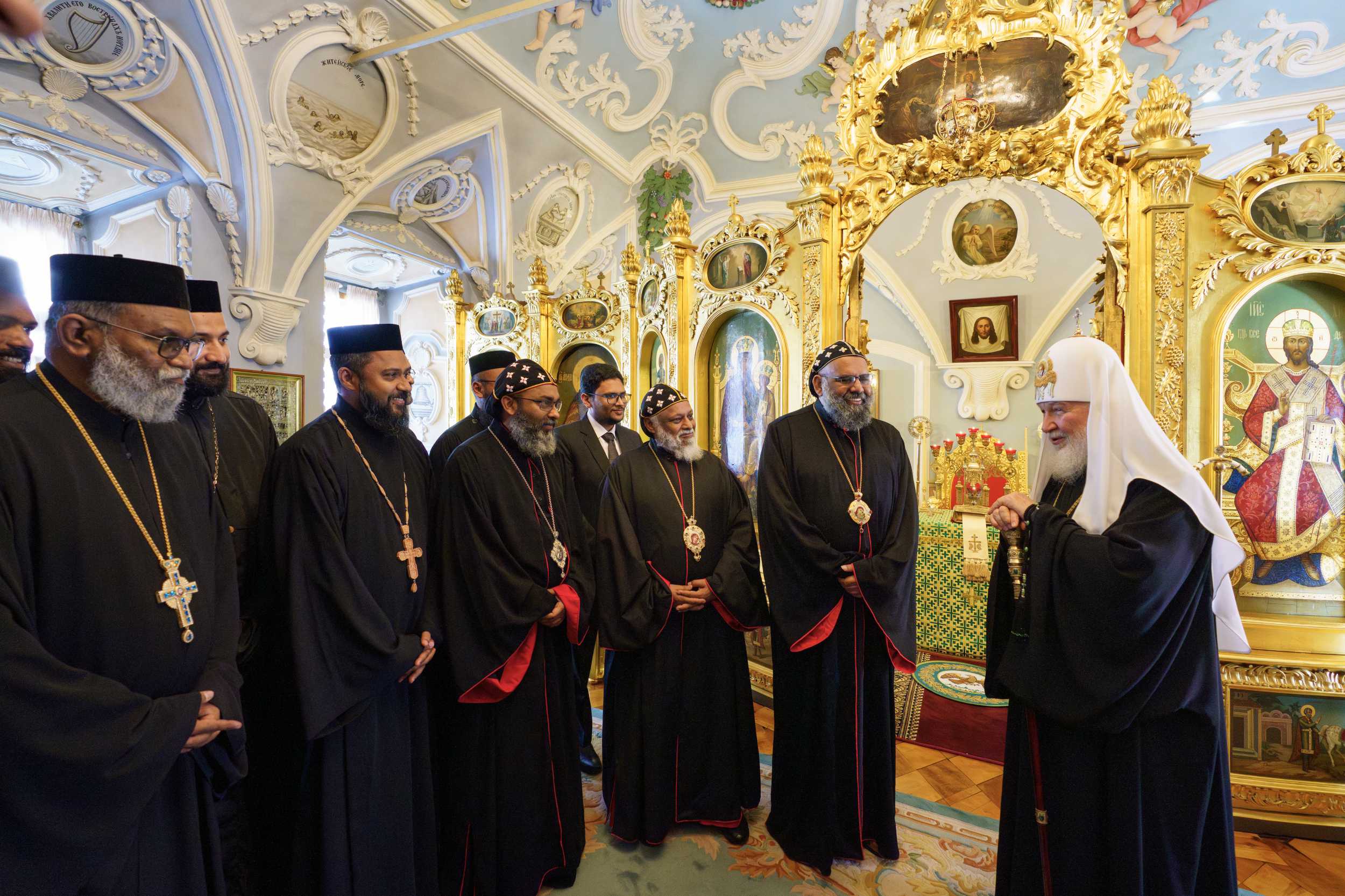 Metropolitan Abraham Mar Stephanos thanked the Primate of the Russian Church for the warm welcome and conveyed to him cordial greetings from the Primate of the Malankara Church, His Holiness Catholicos Baselios Marthoma Mathews III. On behalf of H.H. Baselios Marthoma Mathews III, he also expressed prayerful support to Metropolitan Arseniy of Sviatohirsk, who remains in custody, as well as to Metropolitan Theodosy of Cherkasy and Kaniv and all the faithful children of the Ukrainian Orthodox Church who are being subjected to persecution.