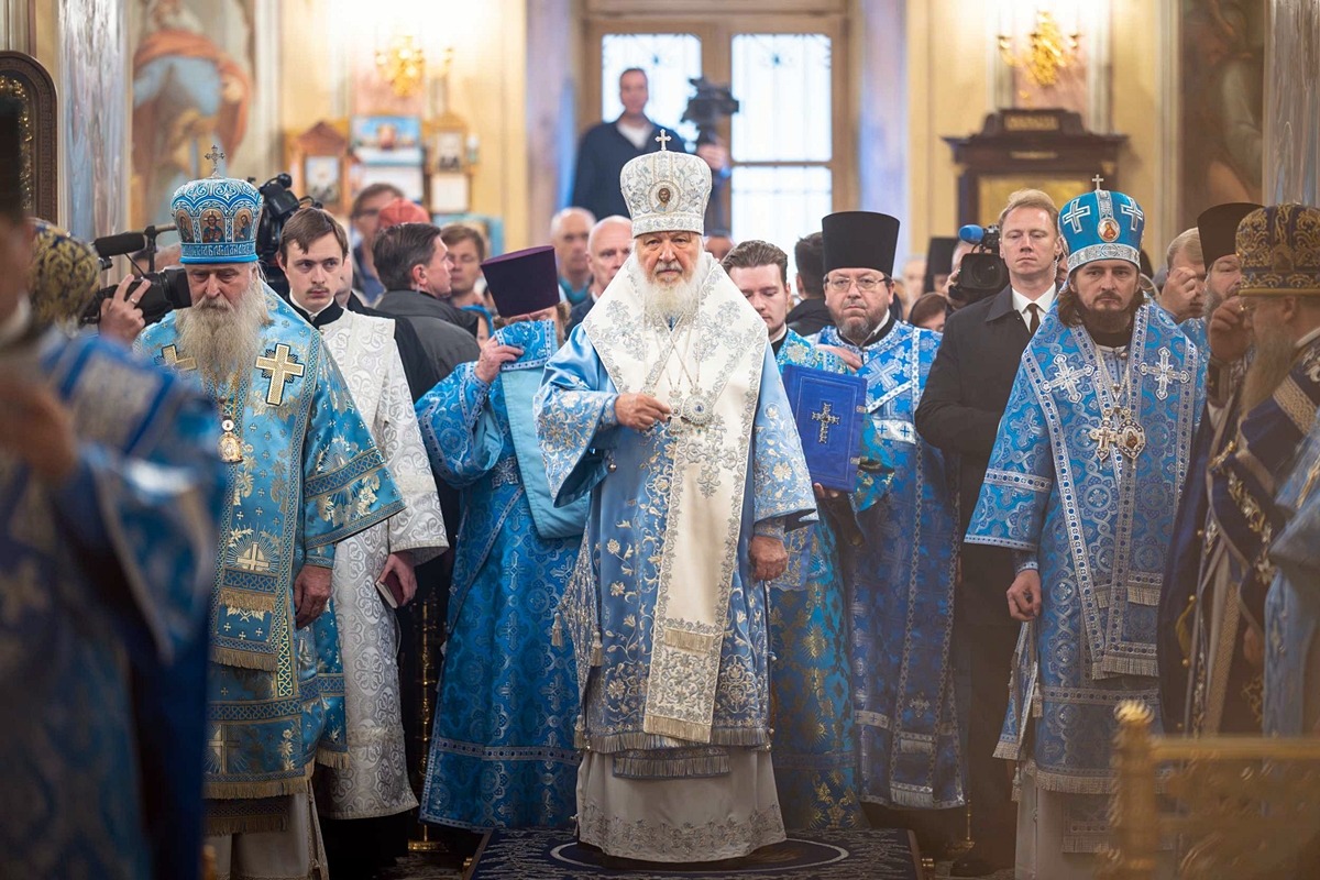14 октября, в праздник Покрова Пресвятой Владычицы нашей Богородицы и Приснодевы Марии, Святейший Патриарх Кирилл совершил Божественную литургию в верхней церкви храма Покрова Пресвятой Богородицы Покровского ставропигиального женского монастыря г. Москвы.