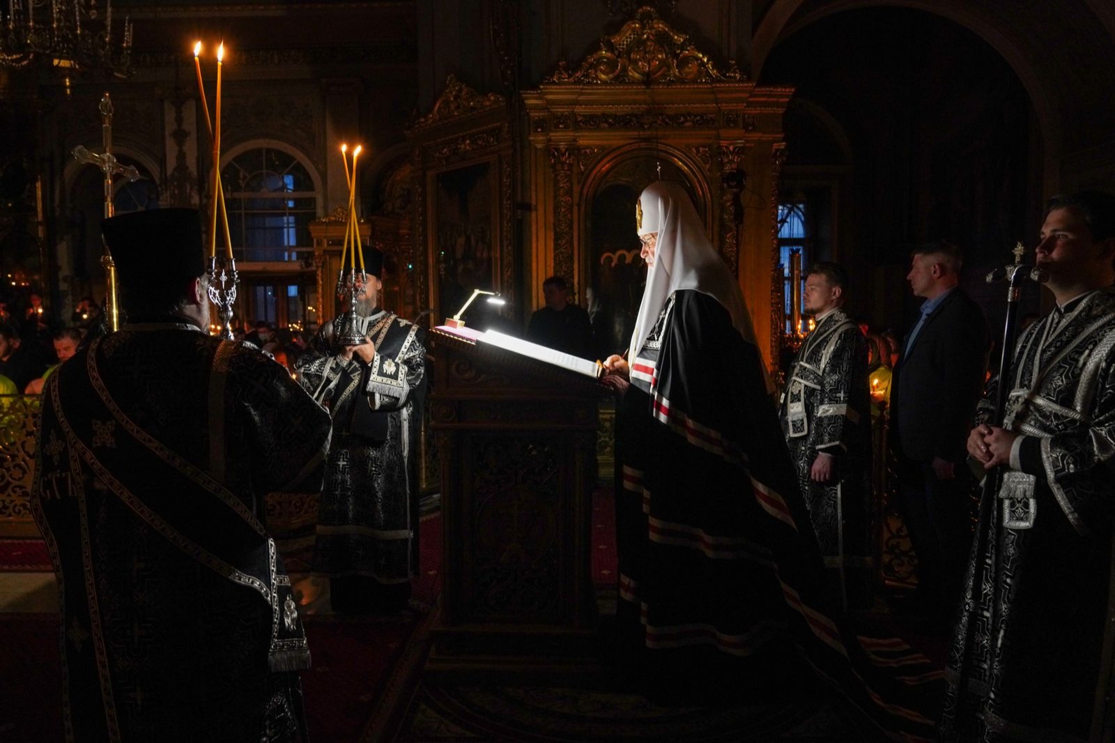 Вечером 4 марта 2025 года, во вторник первой седмицы Великого поста, Святейший Патриарх Московский и всея Руси Кирилл совершил великое повечерие с чтением Великого покаянного канона преподобного Андрея Критского в Богоявленском кафедральном соборе в Елохове г. Москвы.