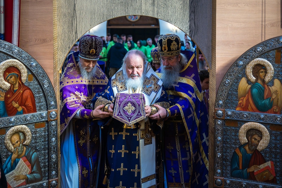 Святейший Патриарх Кирилл освятил два престола: центральный — в честь священномученика Ермогена, южный — в честь преподобного Сергия Радонежского. Также были освящены 20 антиминсов.