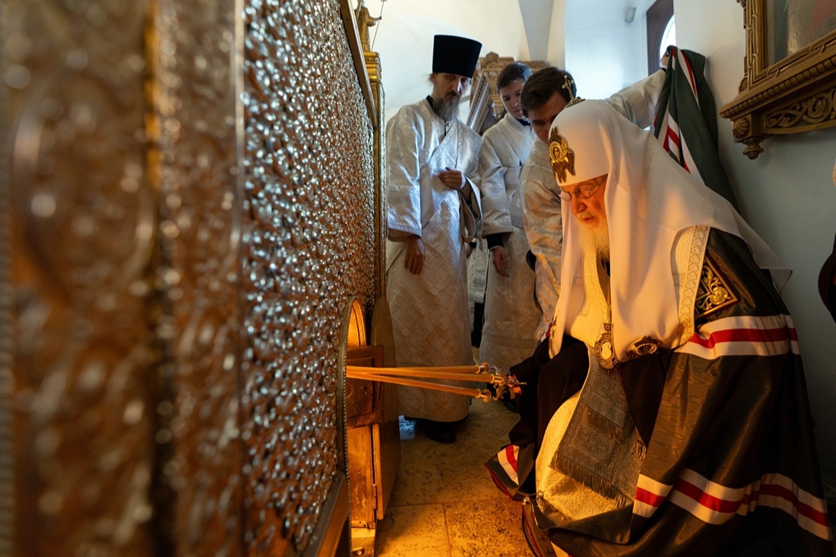 14 апреля 2025 года, в понедельник Страстной седмицы, в Малом соборе Донского ставропигиального монастыря г. Москвы Святейший Патриарх Московский и всея Руси Кирилл совершил молебен на начало чина мироварения.