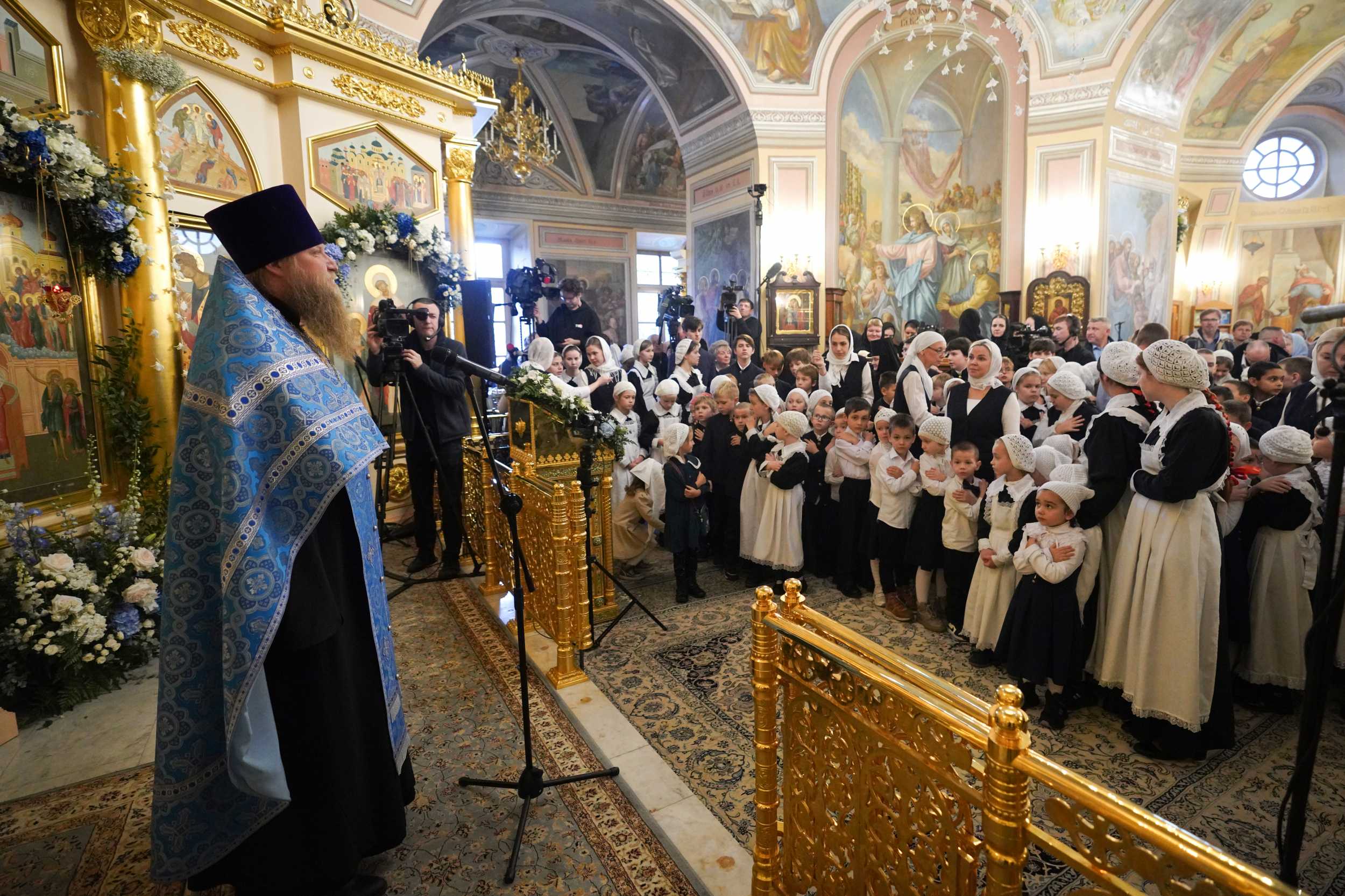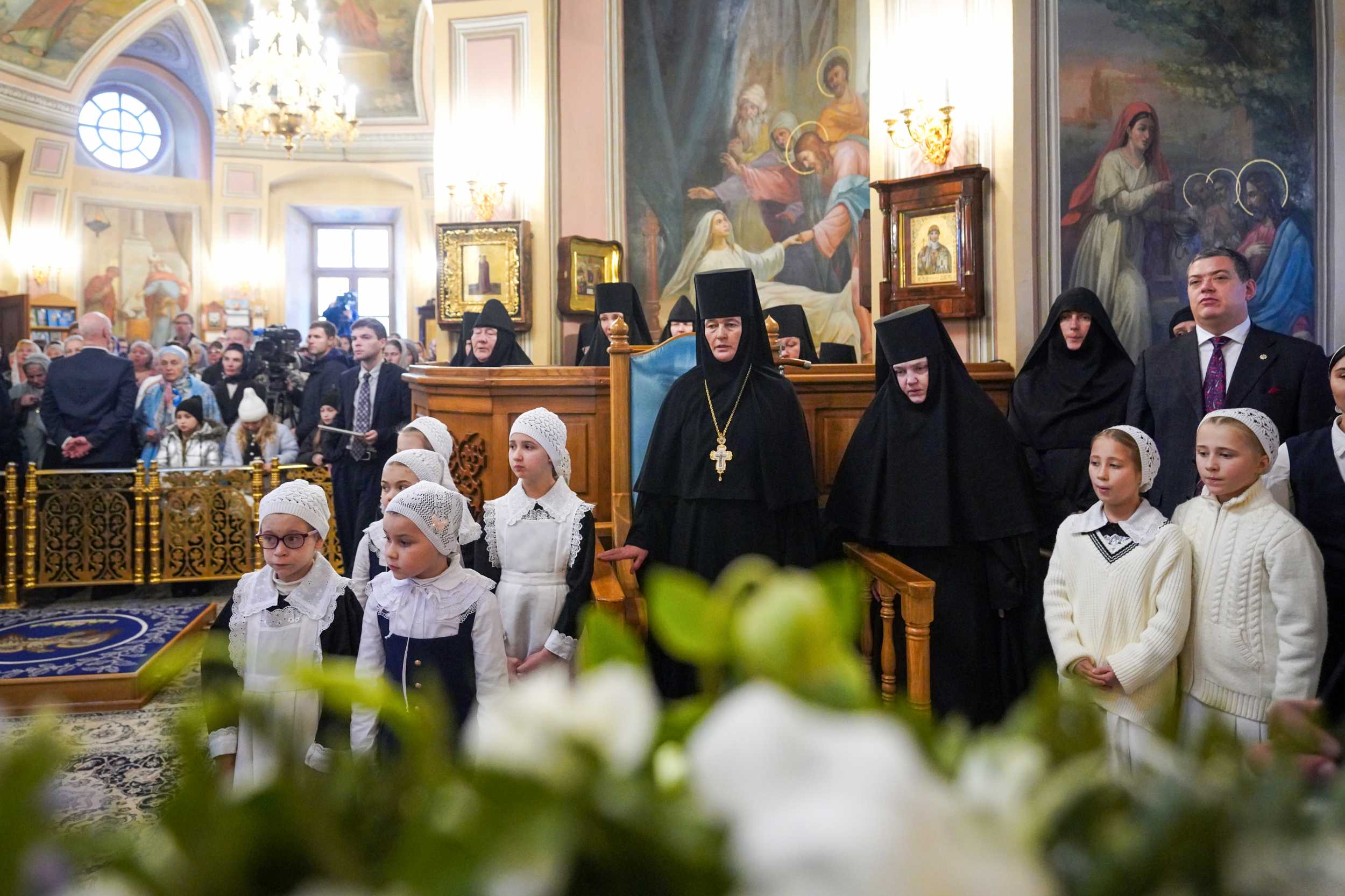 В храме молились настоятельница Покровского монастыря игумения Феофания (Мискина) с сестрами обители, воспитанницы монастырского приюта для девочек, благотворители монастыря, многочисленные верующие.