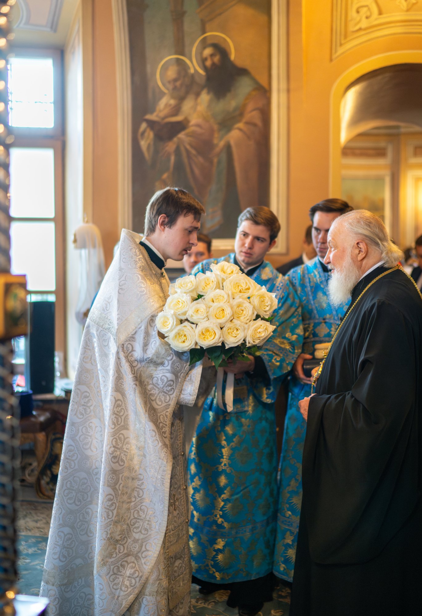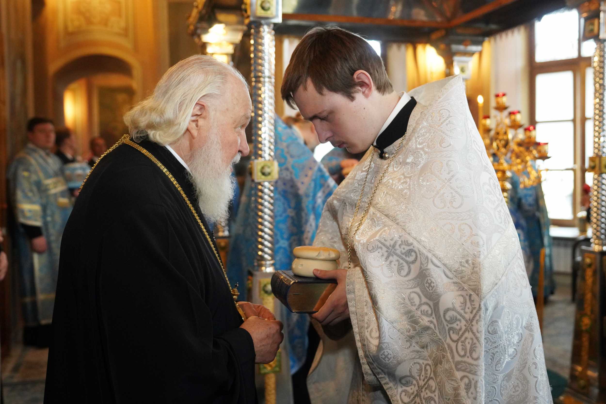 За Литургией Святейший Патриарх Кирилл рукоположил диакона Николая Степанова, аспиранта Сретенской духовной академии, в сан иерея.