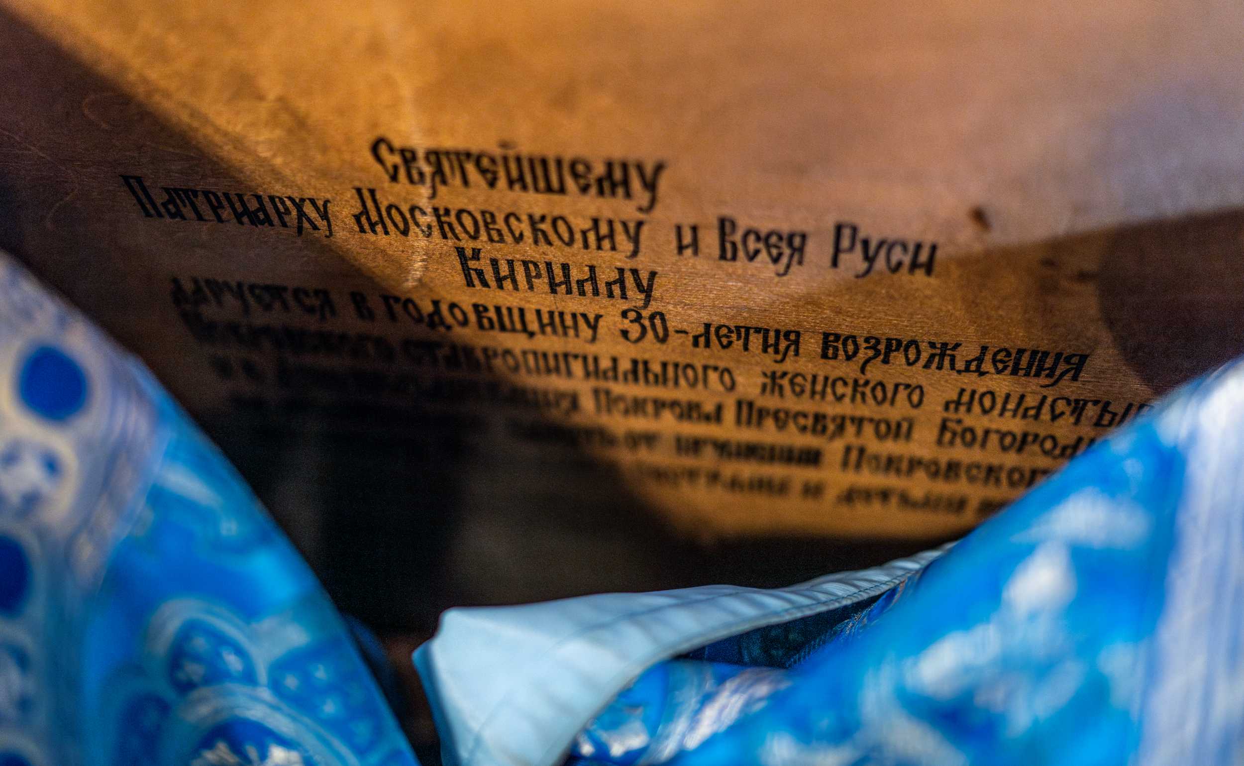 В дар обители Святейший Патриарх Кирилл передал икону «Собор святых целителей, бессребреников и чудотворцев», а также сборники своих проповедей — для каждой насельницы Покровского монастыря.