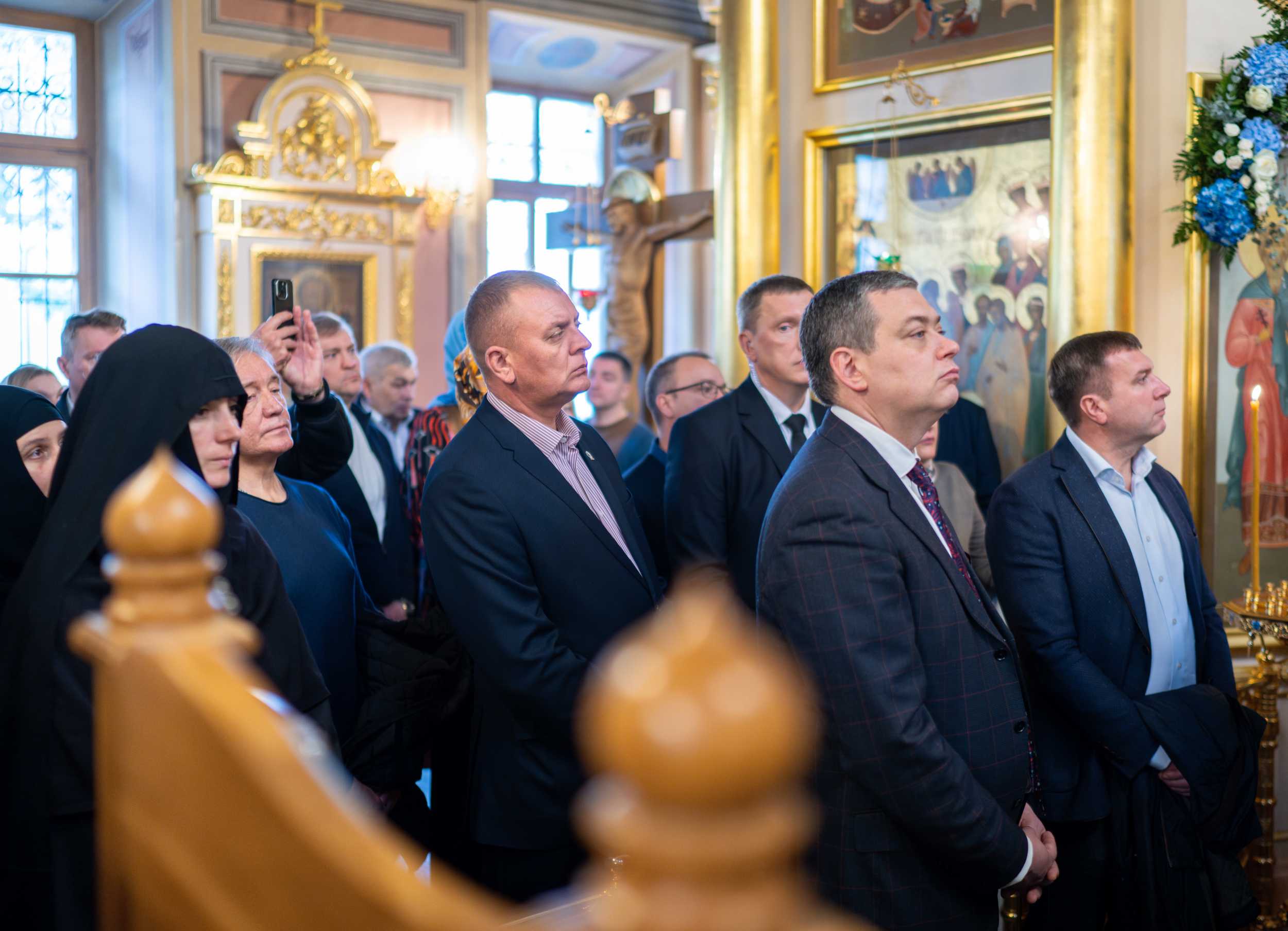 На богослужении присутствовали: председатель Либерально-демократической партии России, председатель Комитета по международным делам Государственной Думы Федерального Собрания Российской Федерации Л.Э. Слуцкий; депутат Государственной Думы ФС РФ, староста Патриаршего Успенского собора в Кремле Н.Ю. Чаплин; руководитель Департамента национальной политики и межрегиональных связей г. Москвы В.И. Сучков; заместитель главы Всемирного русского народного собора, председатель Наблюдательного совета Общероссийского общественного движения «Россия Православная» М.М. Иванов; и.о. генерального директора художественно-производственного предприятия «Софрино» В.А. Левин; главный врач Центральной клинической больницы святителя Алексия, митрополита Московского, А.Ю. Заров; руководитель ювелирно-художественной мастерской «Апостол» И.С. Харьков.