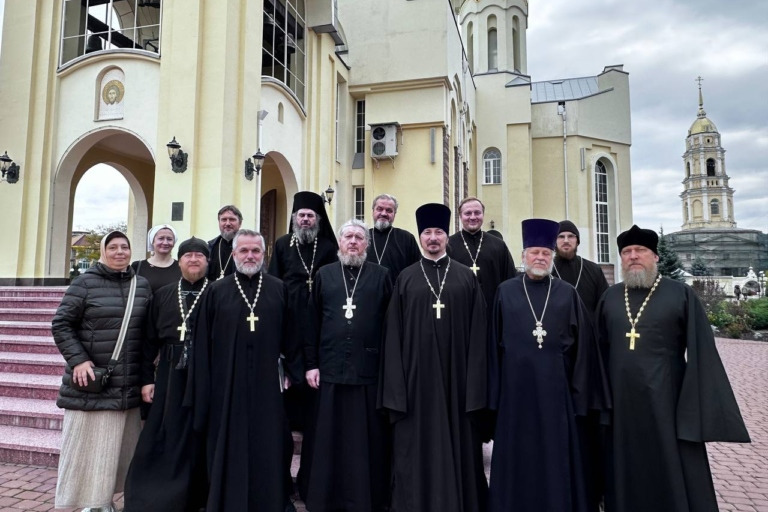 Участники встречи обсудили организационные вопросы, связанные с выездами священников и добровольцев в зону конфликта. Протоиерей Сергий Кляев провел инструктаж священников.