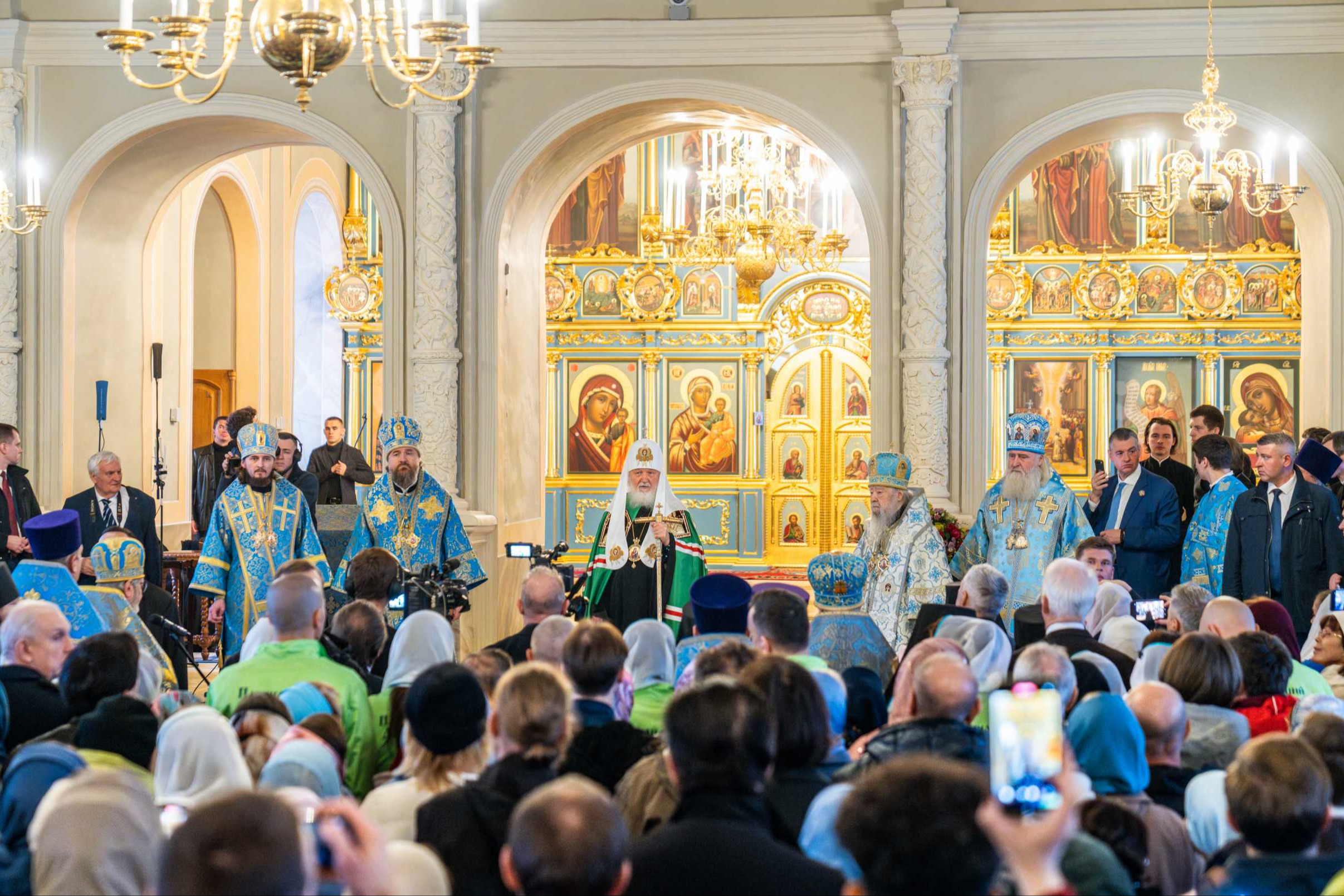 26 октября 2025 года, в Неделю 20-ю по Пятидесятнице, день памяти святых отцов VII Вселенского Собора, день празднования Иверской иконе Божией Матери, Святейший Патриарх Московский и всея Руси Кирилл совершил чин обновления храма Успения Пресвятой Богородицы Новодевичьего ставропигиального женского монастыря города Москвы и Божественную литургию в обновленном храме. По окончании Литургии Предстоятель Русской Православной Церкви произнес проповедь.