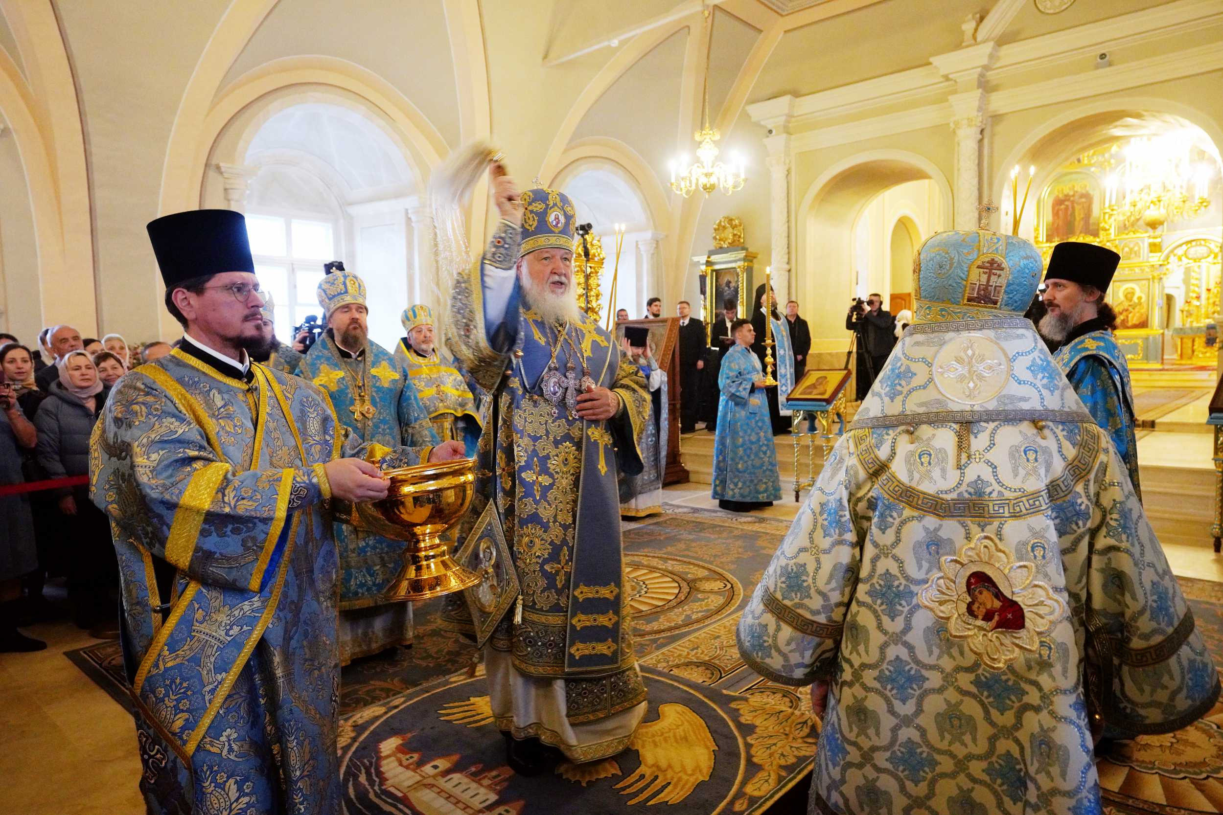 Святейший Патриарх Кирилл совершил Литургию в обновленном Успенском храме Новодевичьего ставропигиального монастыря г. Москвы