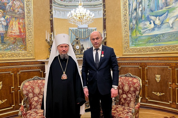 В ходе встречи архиерей наградил Александра Рогожника медалью Белорусской Православной Церкви святителя Кирилла Туровского.
