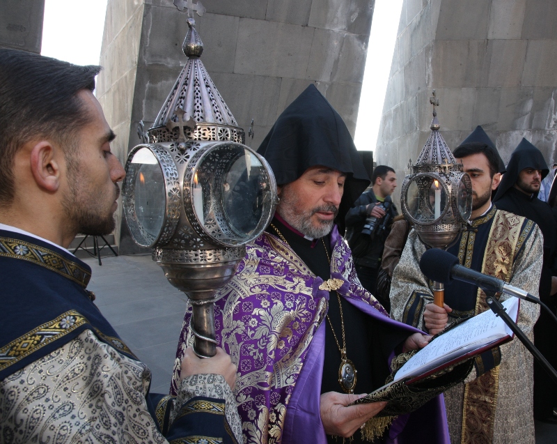 Верховный Патриарх и Католикос всех армян Гарегин II совершил заупокойное богослужение, за которым пел хор Эчмиадзинского кафедрального собора под управлением регента Рубена Шарбатяна.