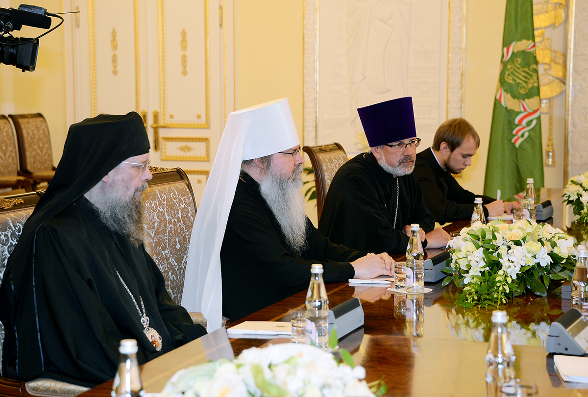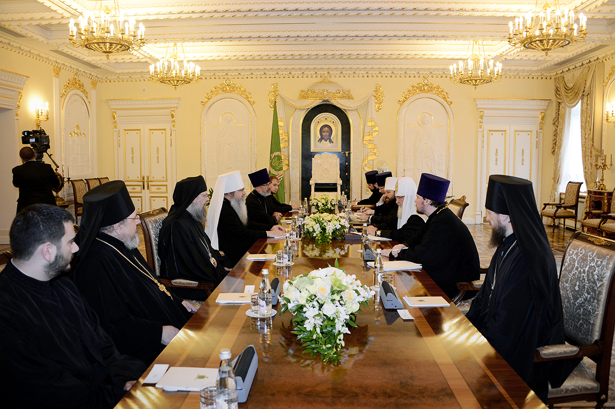Святейший Патриарх Кирилл приветствовал гостя, отметив, что считает визит Блаженнейшего Митрополита Тихона очень важным.