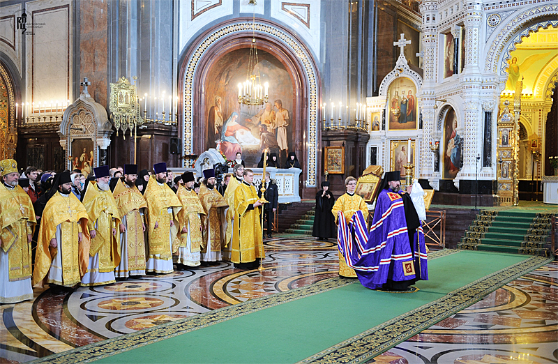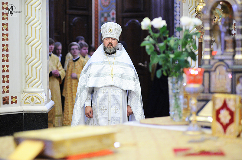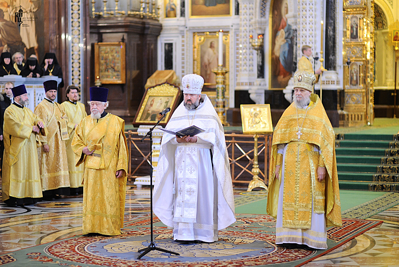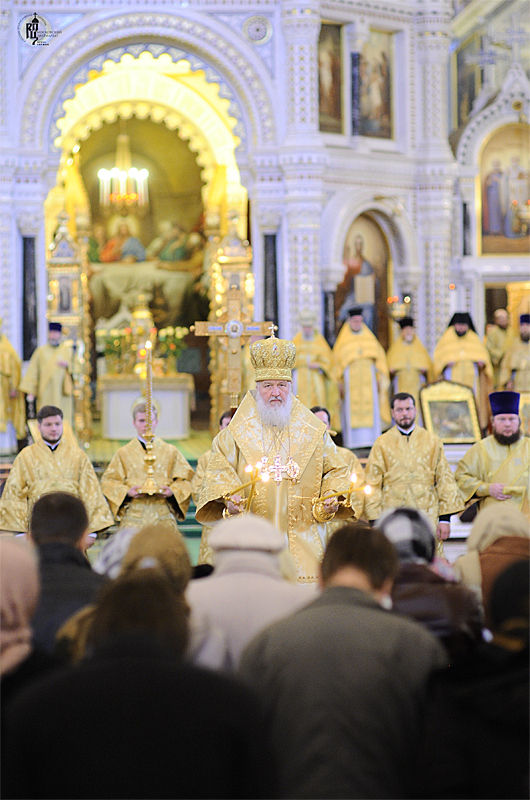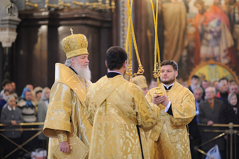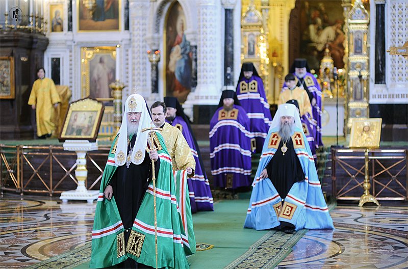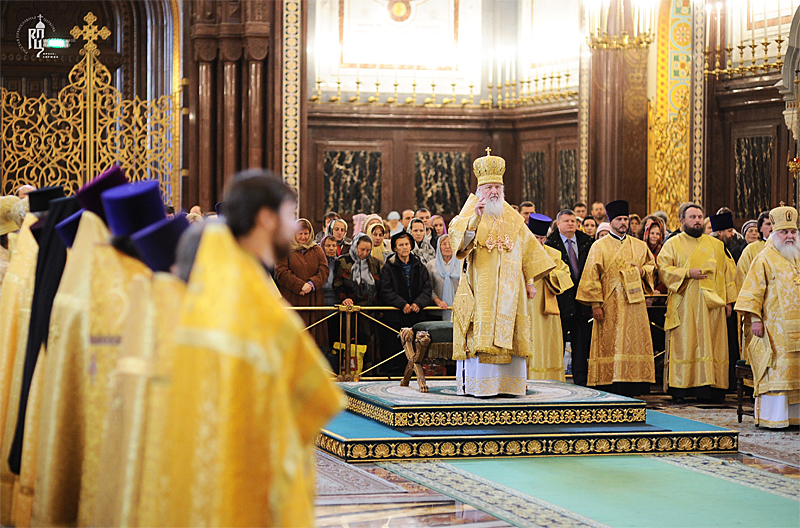 Его Святейшеству сослужили: митрополит Саранский и Мордовский Варсонофий, управляющий делами Московской Патриархии; архиепископ Истринский Арсений; архиепископ Верейский Евгений, председатель Учебного комитета Русской Православной Церкви; епископ Солнечногорский Сергий, руководитель Административного секретариата Московской Патриархии; епископ Выборгский Назарий, наместник Свято-Троицкой Александро-Невской лавры; епископ Воскресенский Савва, наместник Новоспасского ставропигиального монастыря; епископ Магаданский и Синегорский Иоанн; епископ Ардатовский и Атяшевский Вениамин; архимандрит Кирилл Говорун, первый заместитель председателя Учебного комитета Русской Православной Церкви; протоиерей Владимир Диваков, секретарь Патриарха Московского и всея Руси по г. Москве; протоиерей Михаил Рязанцев, ключарь кафедрального соборного Храма Христа Спасителя; протоиерей Рауно Пиетаринеен, ректор Православной духовной семинарии в г. Йоэнсуу, Финляндия (Финляндская Православная Церковь); игумен Исидор (Тупикин), ответственный секретарь Управления делами Московской Патриархии; диакон Петри Няканен (Финляндская Православная Церковь); духовенство г. Москвы.