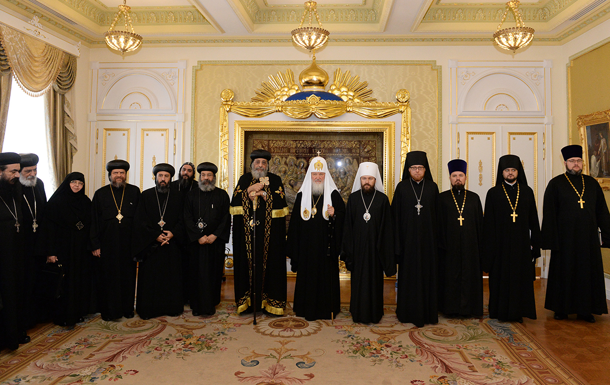 Приветствуя Святейшего Патриарха Феодора и членов делегации Коптской Церкви, Святейший Патриарх Кирилл отметил, что связывает с этим визитом открытие новой страницы в истории отношений между двумя Церквами.