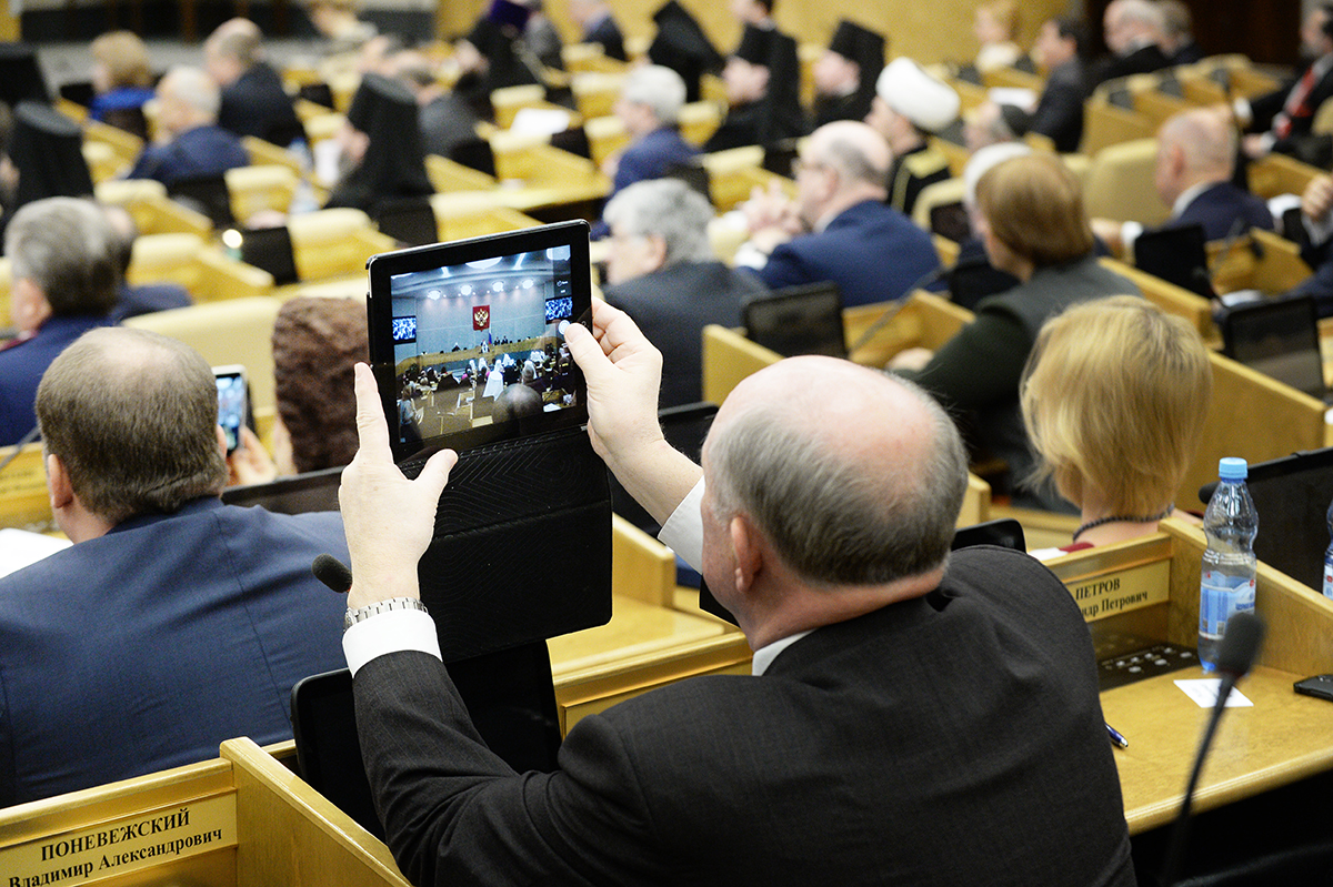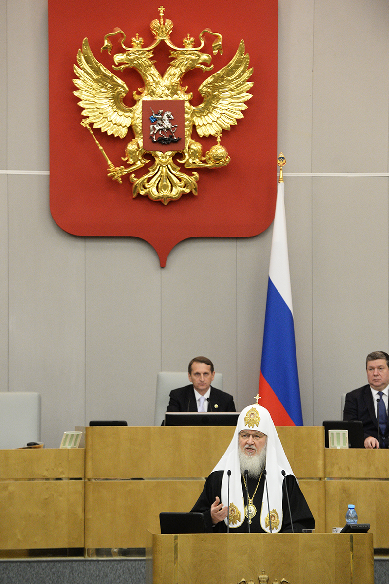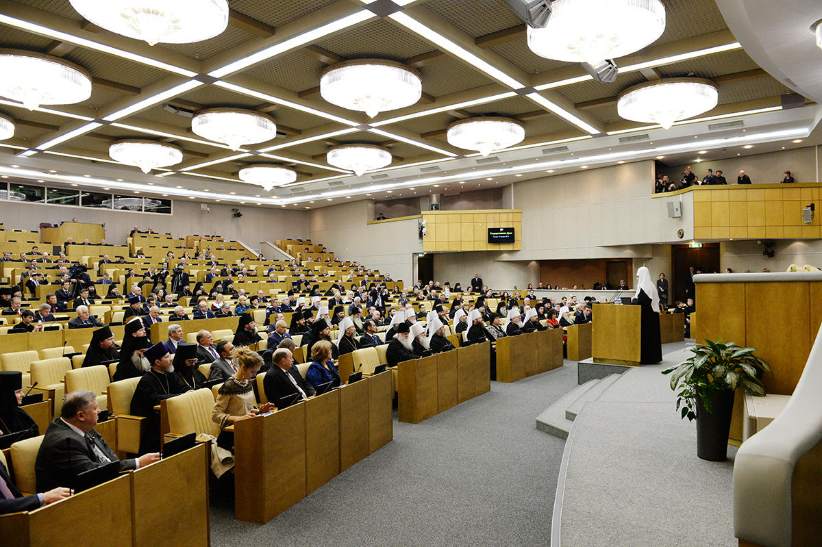 Сегодня впервые со времени начала работы в 1906 году Государственной Думы первого созыва и восстановления в 1917 году Патриаршества в Русской Православной Церкви Патриарх Московский и всея Руси выступает в зале пленарных заседаний Государственной Думы.