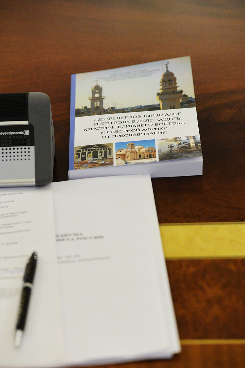 Со своей стороны, Русская Православная Церковь твердо и последовательно следует своему миротворческому призванию. Так было в ушедшем XX веке, во время двух страшных мировых войн и в последующий период. Совместно с представителями наших традиционных религий мы участвовали в то время в миротворческой деятельности. И сегодня мы прикладываем все возможные усилия не только для немедленного прекращения кровопролитных вооруженных конфликтов, которыми наполнено начало нынешнего столетия, но и для помощи жертвам этих противостояний, вне зависимости от их вероисповедания или национальности. Русская Церковь стала инициатором сбора и отправки страдающему сирийскому народу нескольких крупных партий гуманитарной помощи. Мы находимся в постоянном взаимодействии с религиозными лидерами ближневосточного региона, через которых узнаем о реальной ситуации в зоне конфликта и нуждах страдающего мирного населения, оказавшегося в заложниках этой ситуации. В связи с этим хотел бы поблагодарить Императорское православное палестинское общество за большую работу по организации гуманитарных конвоев в Сирию и за взаимодействие Общества с религиозными организациями России. Другим примером являются усилия нашей Церкви в урегулировании проблемы Нагорного Карабаха. Наши действия направлены не только на двусторонние контакты с религиозными и политическими деятелями Армении и Азербайджана, но и на организацию прямых переговоров в трехстороннем формате.